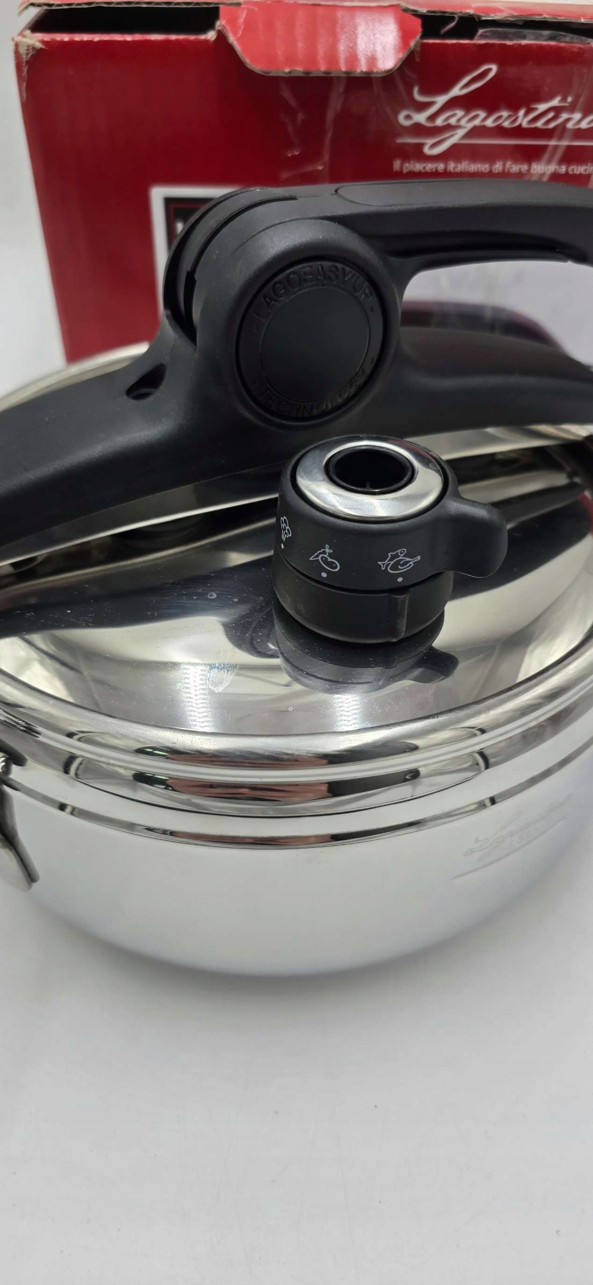 - Легкое открытие: открытие и закрытие горшка Lagostina одним движением благодаря системе открытия Lagoeyy'up, еще проще в использовании