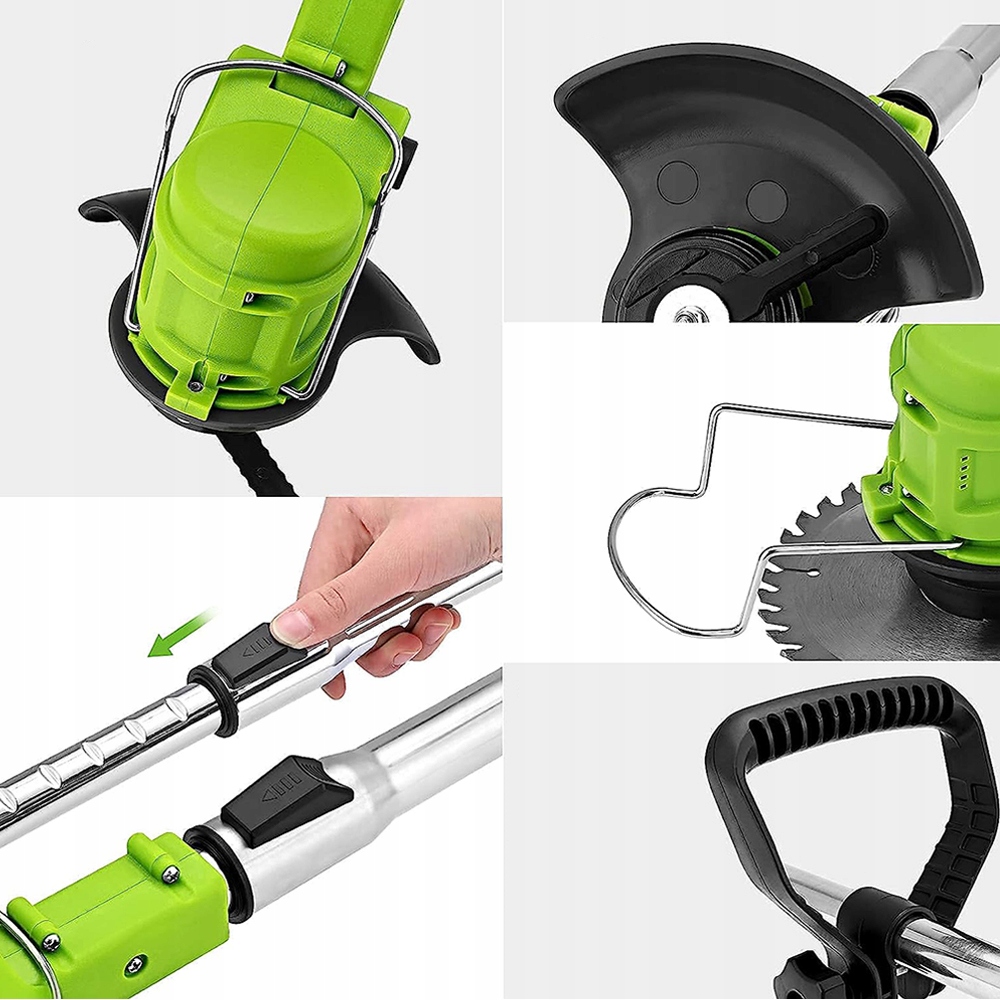 - Чтобы отрегулировать длину: устройство может быть адаптировано к вашему росту, что облегчает работу Проводимость, предотвращая столкновения: предотвращает предотвращение пилы в случае удара в жесткие объекты Рука Тихая работа