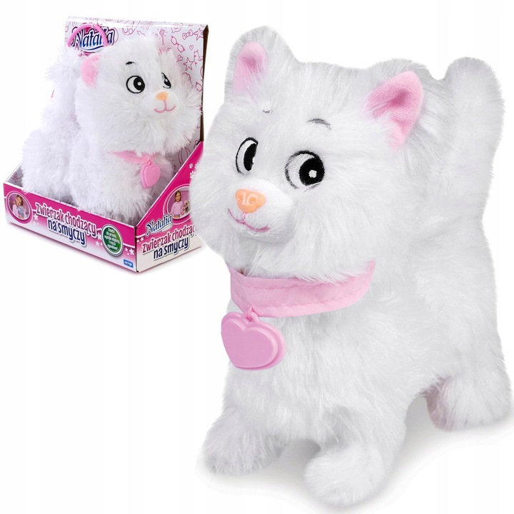 Белый интерактивный котёнок гуляет на поводке с пультом Наталья 3+