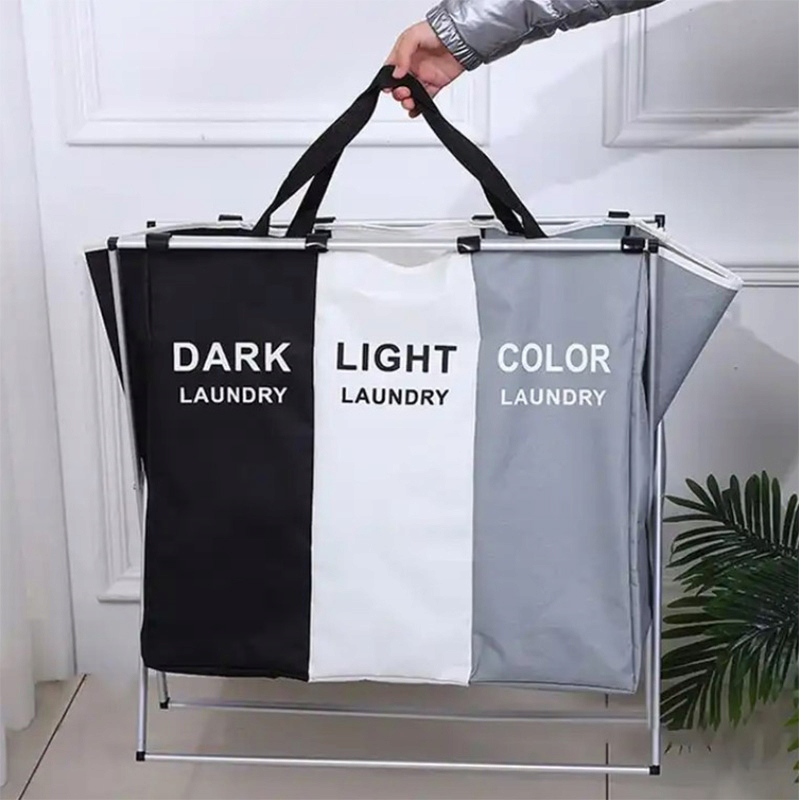 Большим преимуществом корзины является очень прочный текстильный материал, устойчивый к влаге и растрескиванию. Все это основано на легком и прочном каркасе. Благодаря разделению на 3 отделения мы легко можем сортировать белье на светлое, темное и цветное.