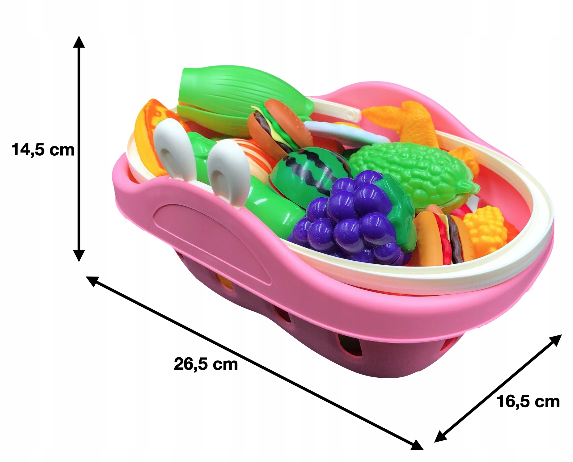КОРЗИНА ПОКУПОЧНАЯ С РУЧКОЙ ДЛЯ ИГРОВОГО МАГАЗИНА + ПРОДУКТЫ И ПОСУДА