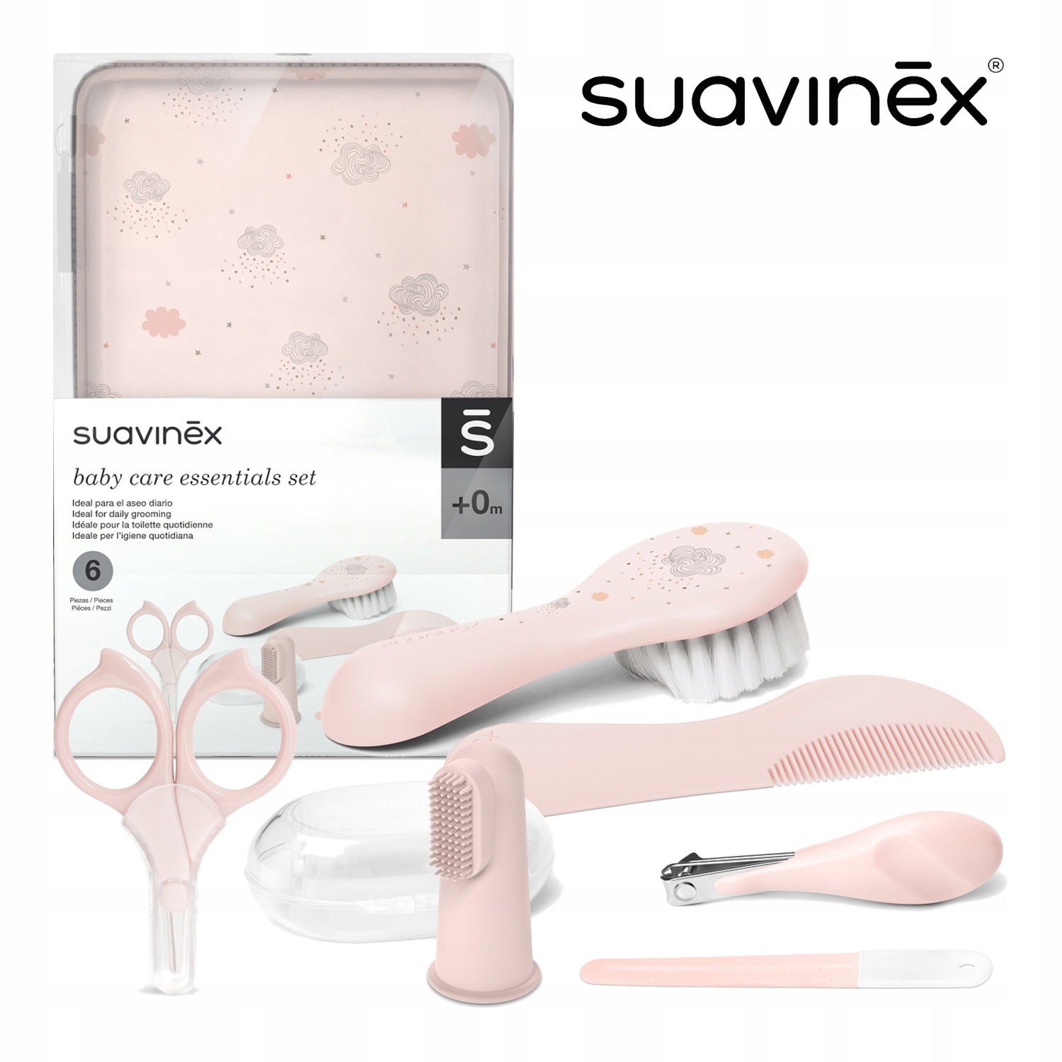 Набор Suavinex является комплексным решением для ежедневного ухода ребенка. Комплект включает в себя необходимые аксессуары: ножницы с округлыми концами, файлом, ножом, кистью и расчесыванием для первых волос и силиконовой зубной щеткой.