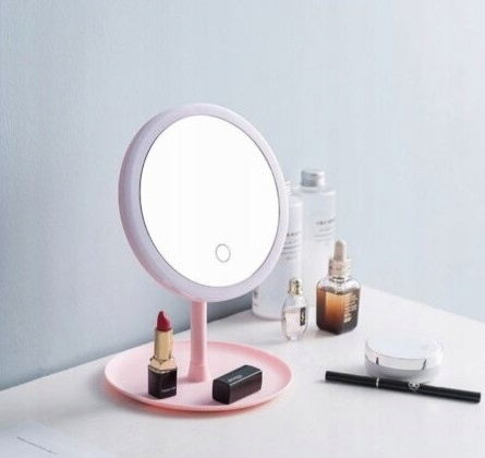 ЗЕРКАЛО ДЛЯ КОСМЕТИЧЕСКОГО МАКИЯЖА С БЕЛОЙ/РОЗОВОЙ СВЕТОДИОДНОЙ ПОДСВЕТКОЙ