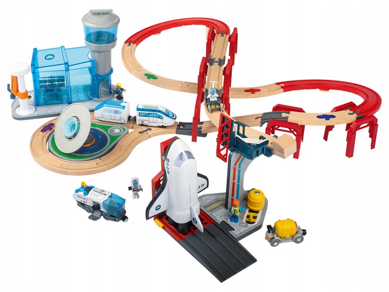 Космічна станція Playtive Wooden Train 67e на рейках електрички 666