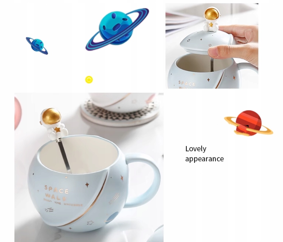 Космическая керамическая кружка с чайной ложкой астронавта
