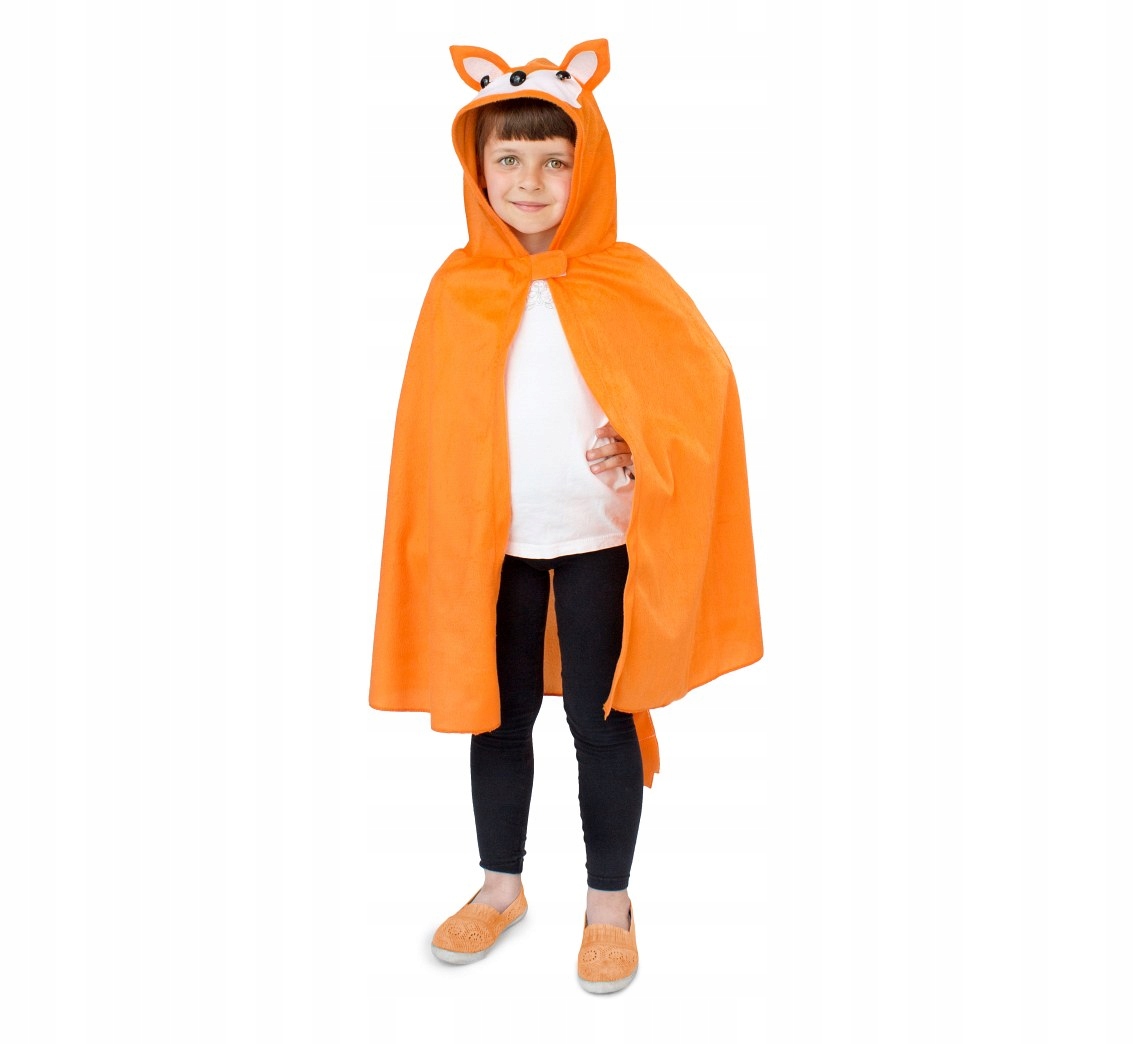 плащ с капюшоном, украшенный глазами и пельмени, позволяет ребенку играть роль умной сказочной кровати. Это отличная замаскированность до осеннего мяча , когда дети представляют свои наряды, вдохновленные природой и сезоном. Оранжевый цвет прекрасно относится к цветам осенних листьев, создавая последовательную и радостную стилизацию.