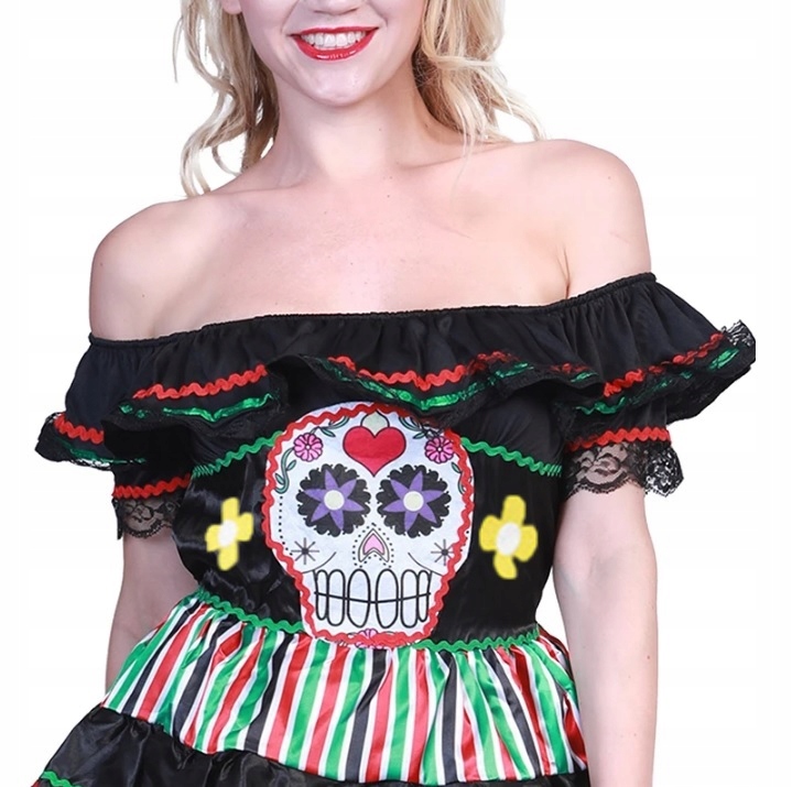 Наряд КОСТЮМ ПЛАТЬЕ НА ХЭЛЛОУИН МЕКСИКАНСКИЙ ЧЕРЕП ПЛАТЬЕ КОКО SENIORITA LA CATRINA DIA DE MUERTOS 152/164 СМ - XS/S
