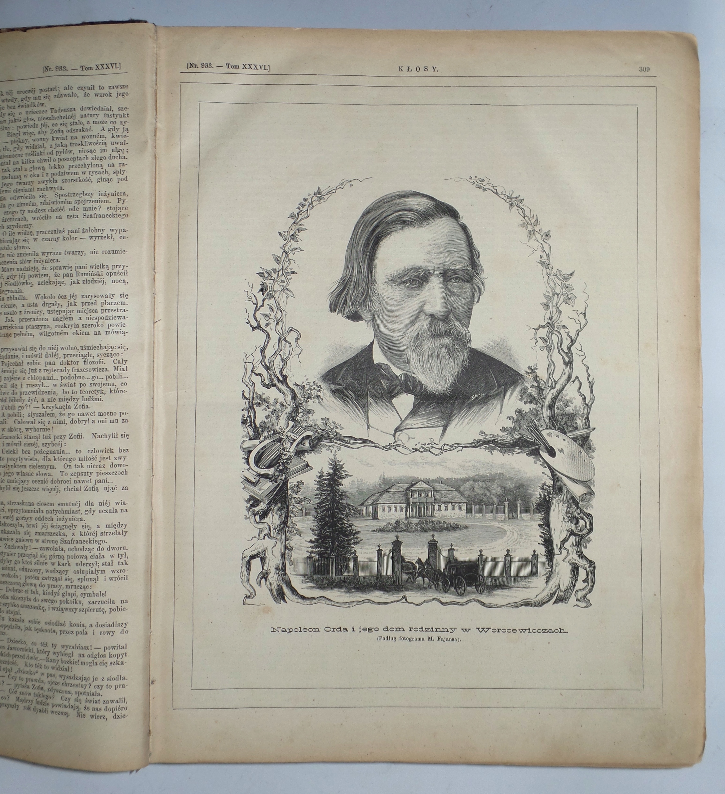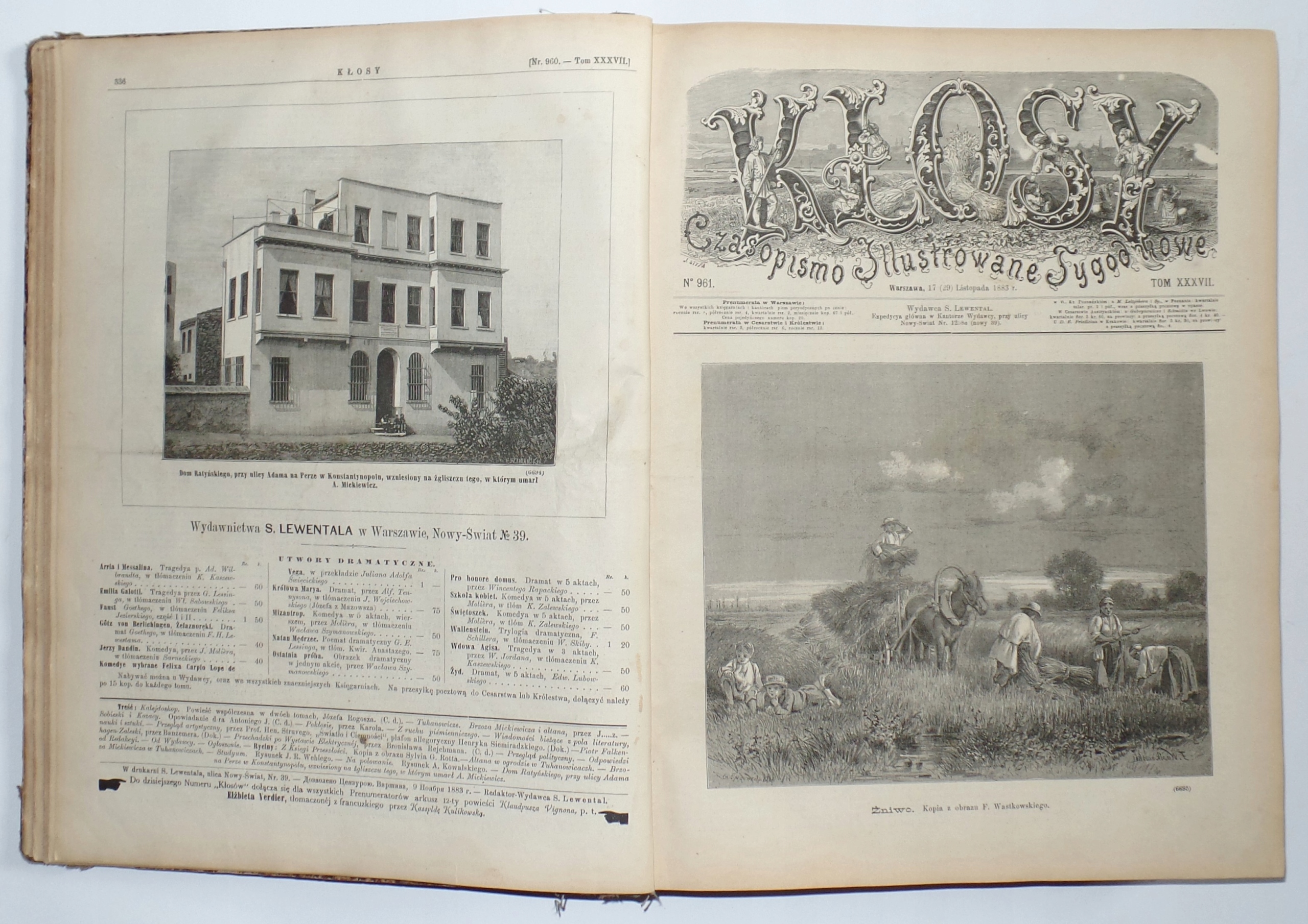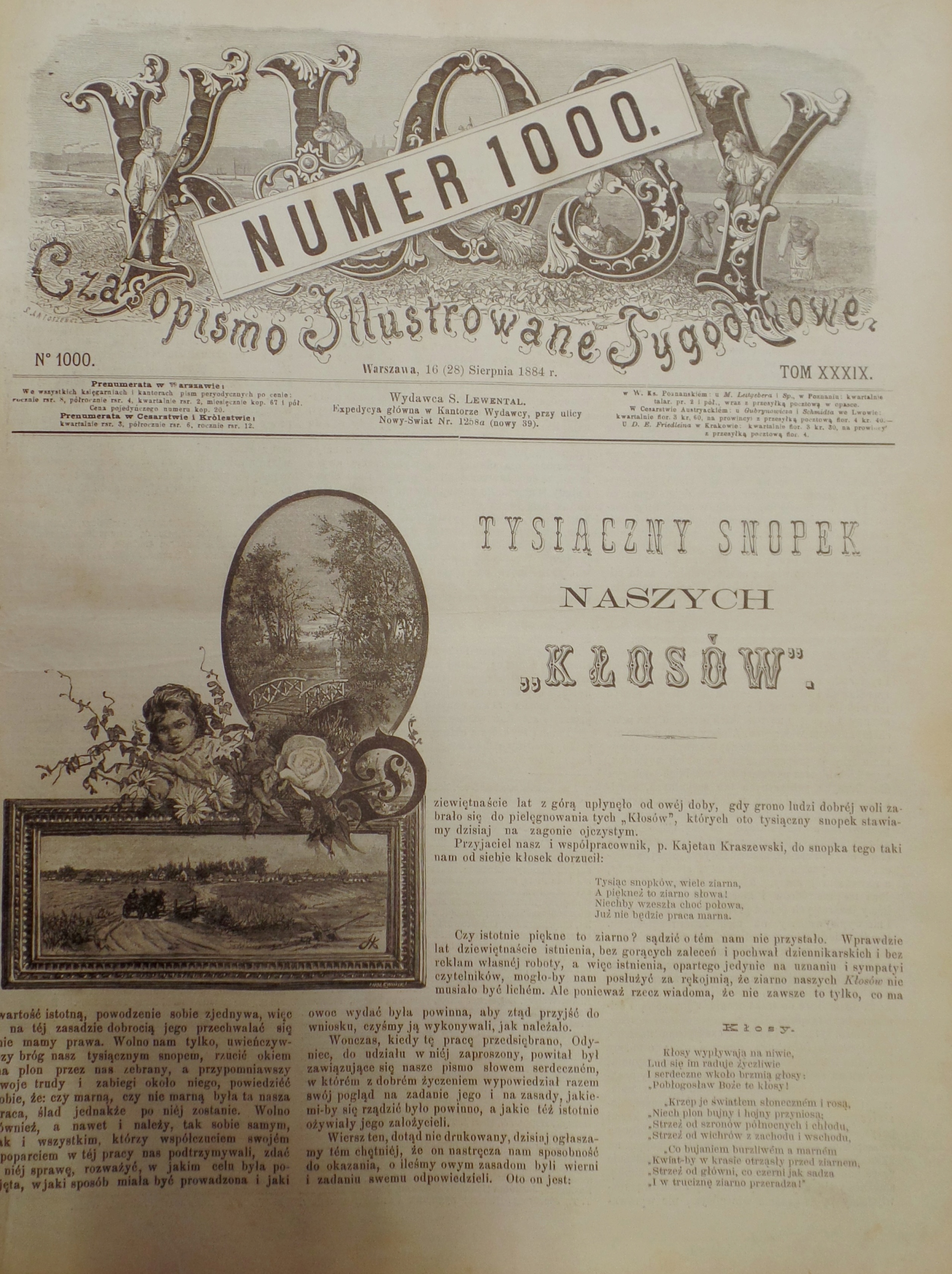 " уши (полное название ушей: еженедельный иллюстрированный журнал, посвященный литературе, науке и искусству) - Plock Illustrated Weekly, опубликован в Варшаве в 1865–1890". Издателем «Клосоу» был Фрэнсискейк Льюлент и Антони Пьеткевич для долгосрочного редактора. С точки зрения редакционной статьи, а также отбора авторов и художников, уши принадлежали к ведущим культурным сочинениям Польши второй половины 19 -го века.