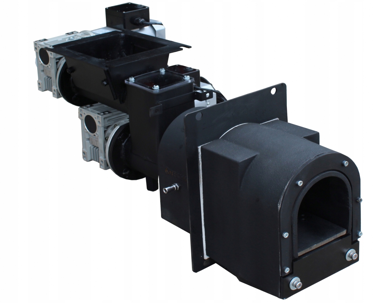 Оснащен новым типом пеллетной горелки СВ300 со ступенчатым питателем, обеспечивающим сепарацию топлива и позволяющим дожигать топливо в виде окатышей из нижнего питателя в процессе тушения. Повышенная надежность и срок службы горелки за счет изменения системы воздухораспределения и изменения отливки печи.