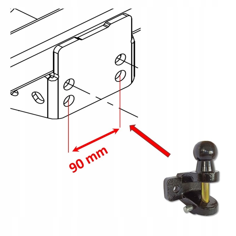 Шар предназначен для установки на фаркопе или непосредственно на заднем ремне автомобиля. Его можно установить на все фаркопы с расстоянием между отверстиями 90 мм. Он также идеально подходит для установки в тракторы, тягачи, квадроциклы, квадроциклы или автомобили специального назначения.