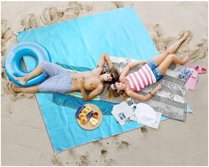 Большой пляжный коврик 200СМ Х 200СМ изготовлен из пескопроницаемого материала, что позволяет легко избавиться от нежелательных песчинок. Просто протрите его рукой, и песок исчезнет!