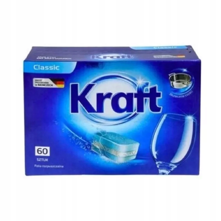 Классические таблетки Kraft в упаковке из 60 кусочков таблеток для посудомоечной машины, которые будут работать в всех условиях. Благодаря классическим таблеткам Kraft, мытье посуды будет простым и приятным. Вы можете забыть о постоянных пятнах и остатках еды Kraft Classic гарантируют, что ваши блюда сияют от чистоты.
