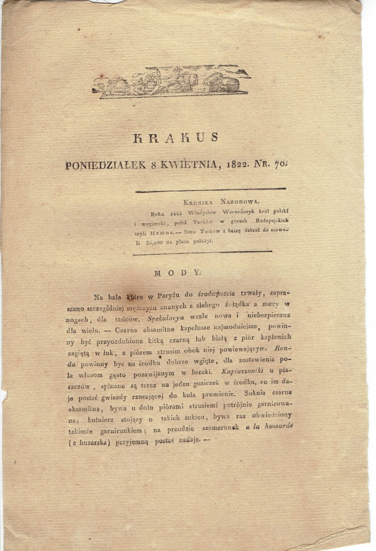 KRAKUS MARZEC KWIECIEŃ 1822 / 9 egzemplarzy