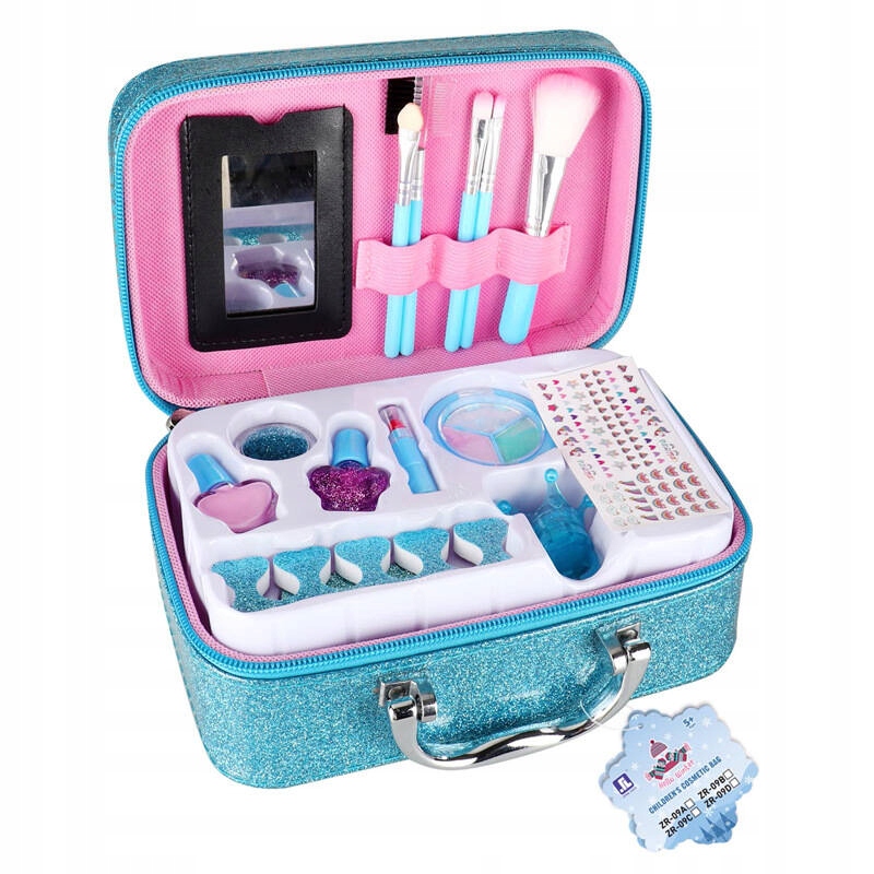 - Набор для макияжа — идеальный подарок для каждой девушки, которая мечтает весело провести время с укладкой. Благодаря богатому содержанию у ребенка есть возможность создавать разнообразные макияжи, укладки ногтей и экспериментировать с цветами.