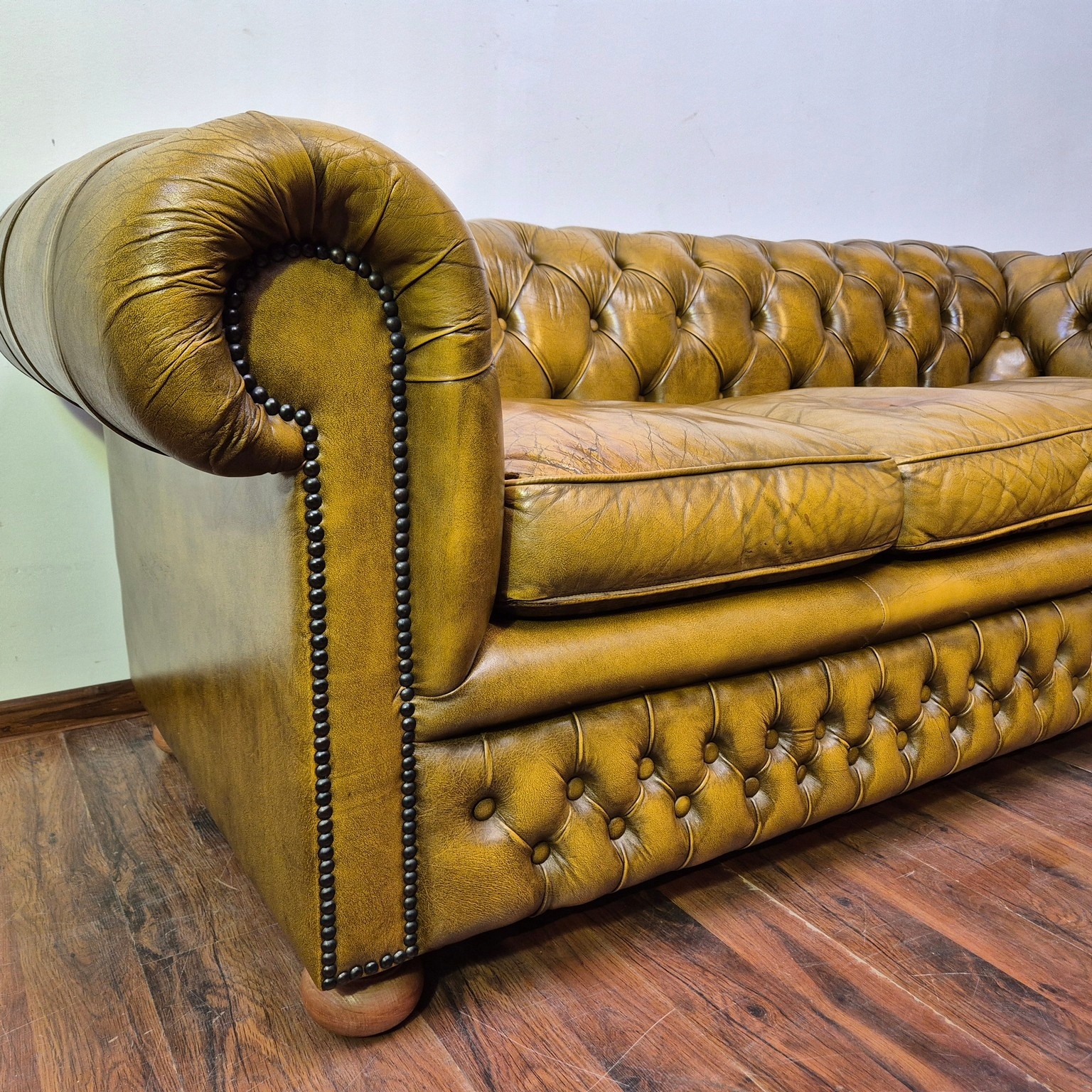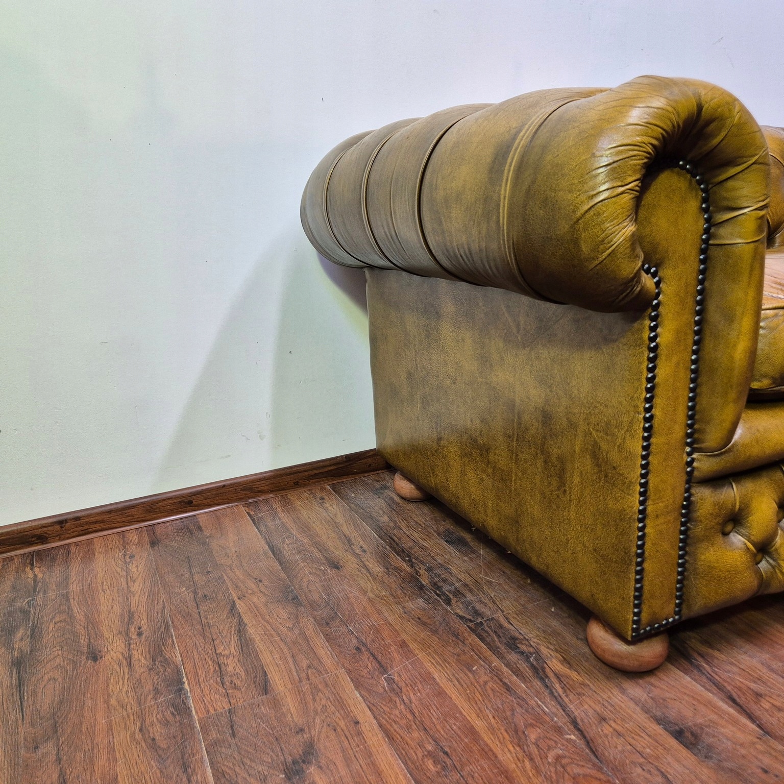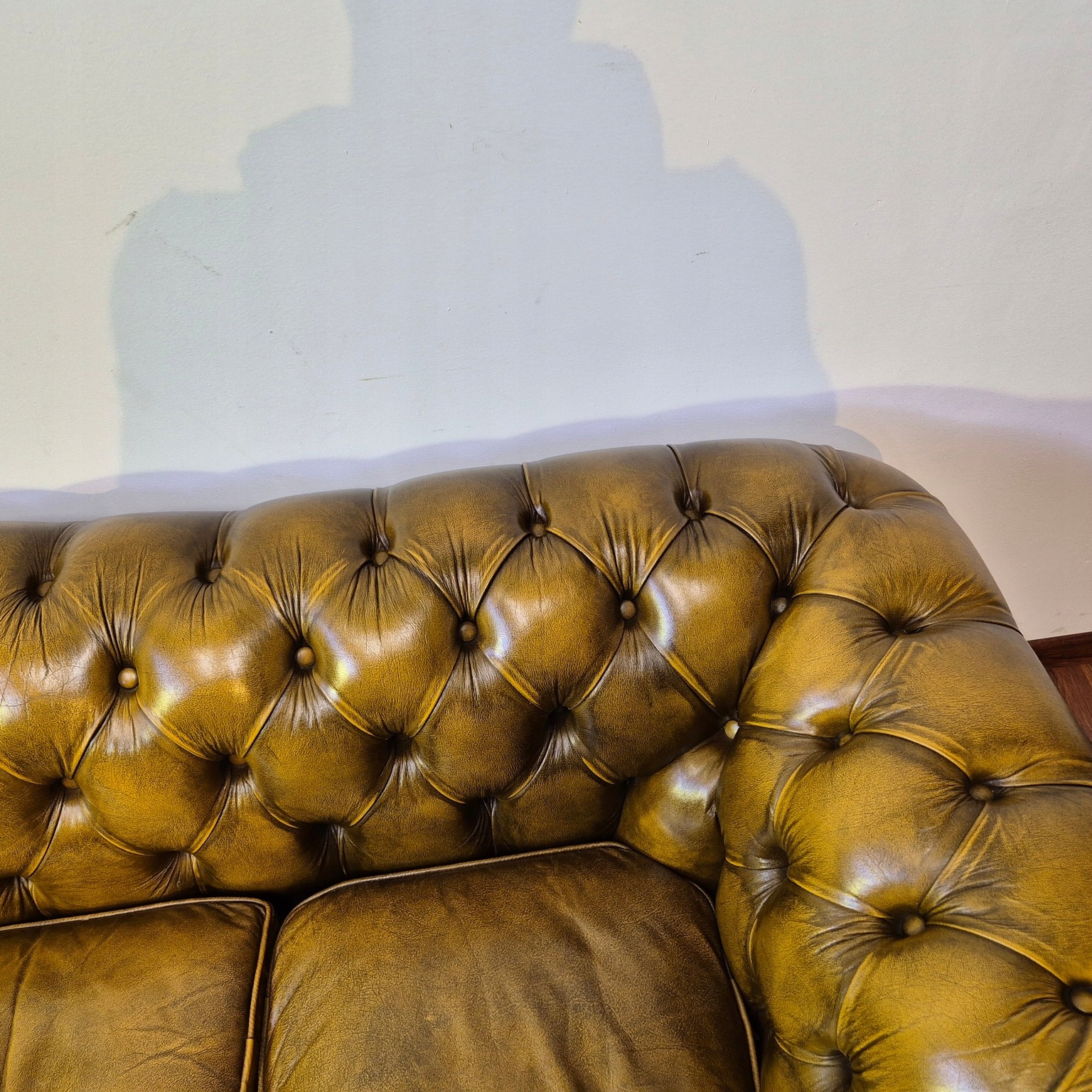 Красивый диван Честерфилд. Франция происхождения. Жирный материал. Натуральная кожа. Стоина характеризуется невероятной элегантностью. Очень хорошая мебель.