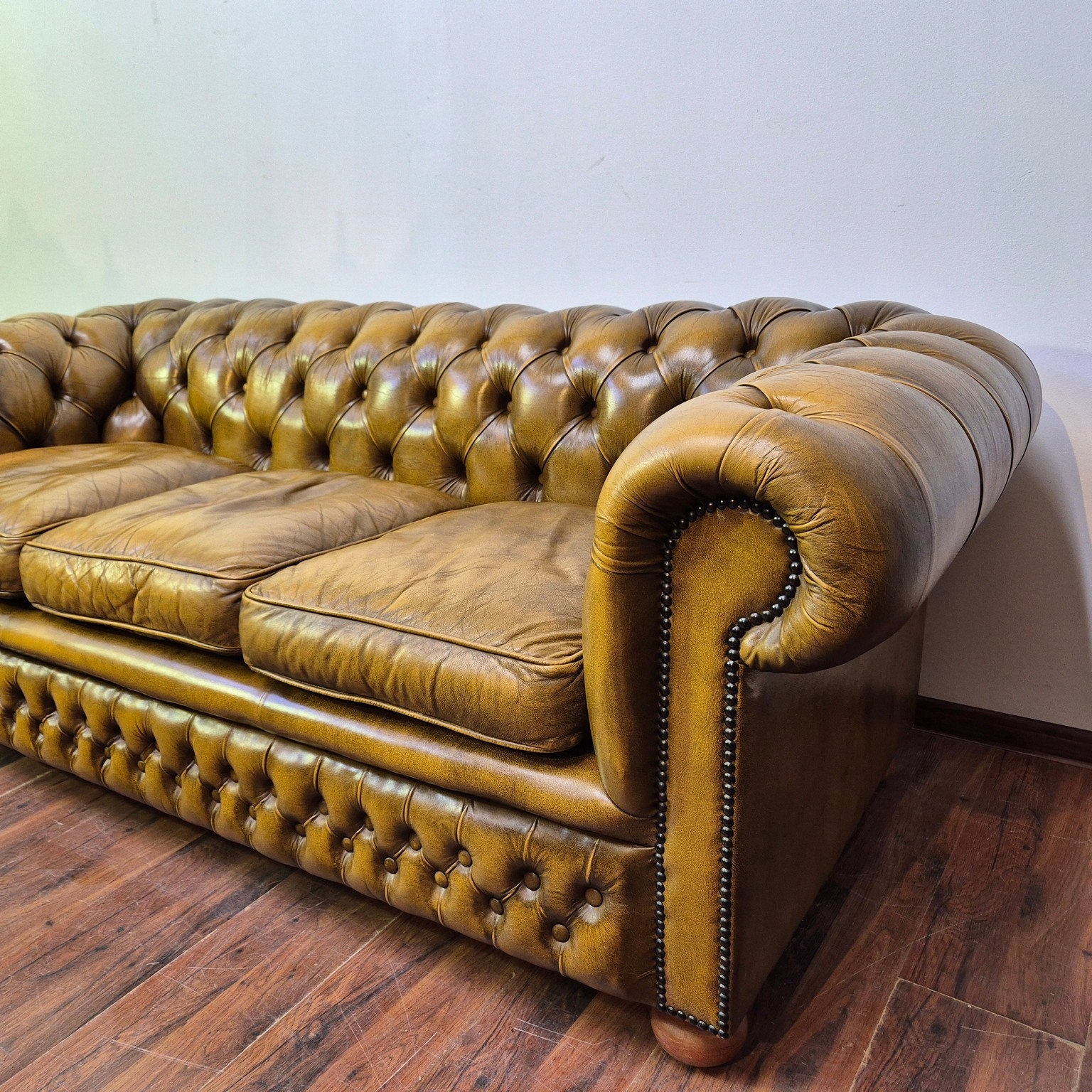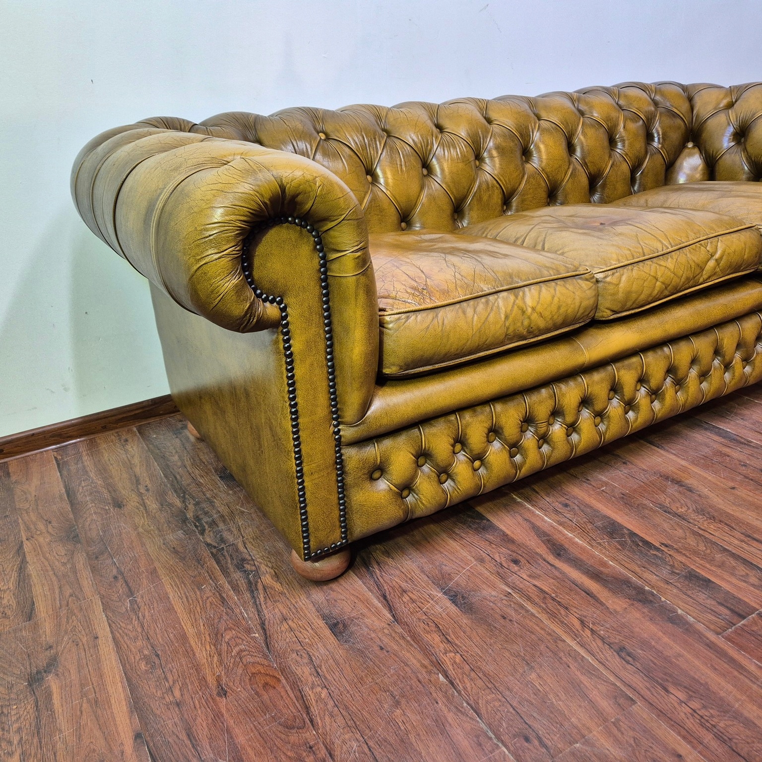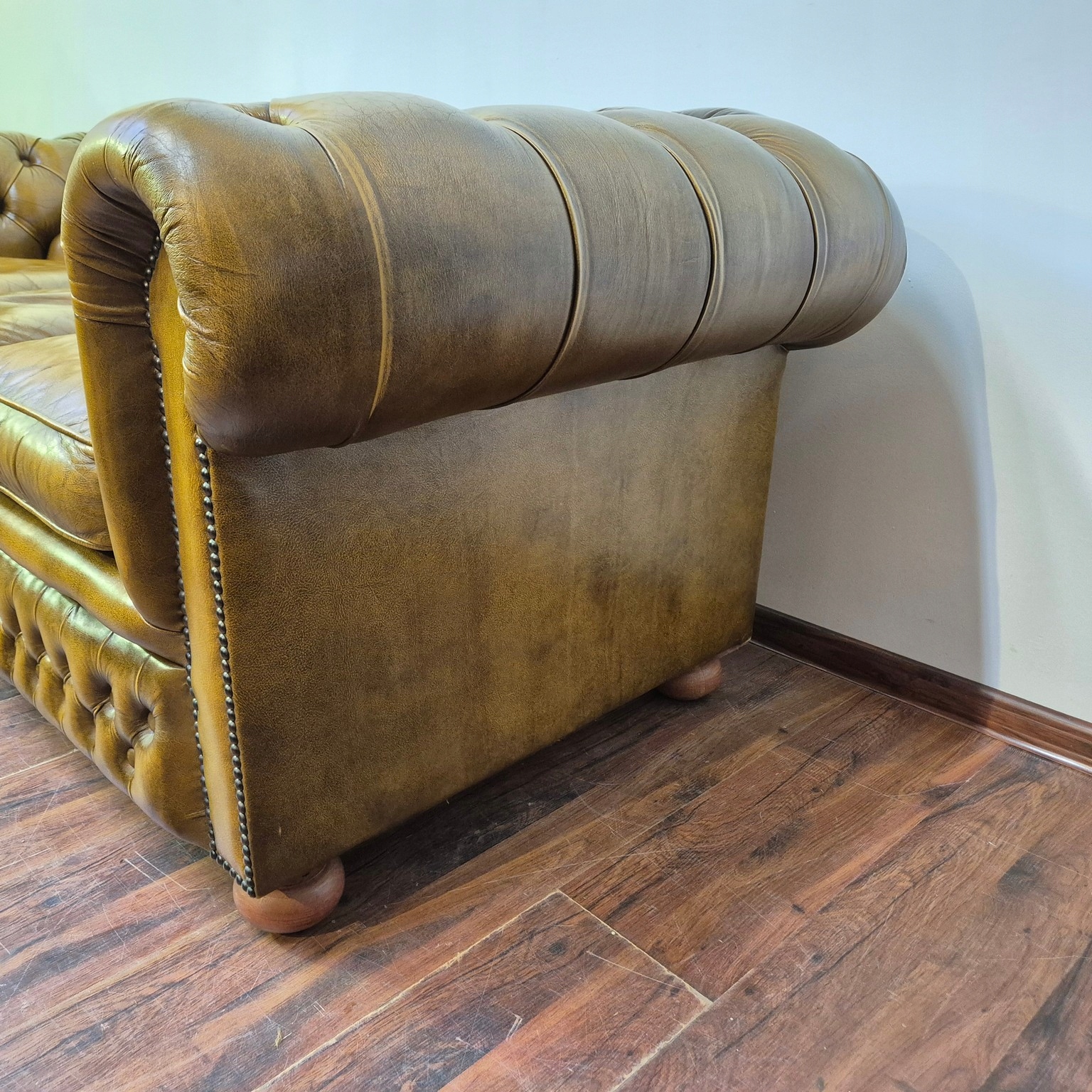 Красивый диван Честерфилд. Франция происхождения. Жирный материал. Натуральная кожа. Стоина характеризуется невероятной элегантностью. Очень хорошая мебель.
