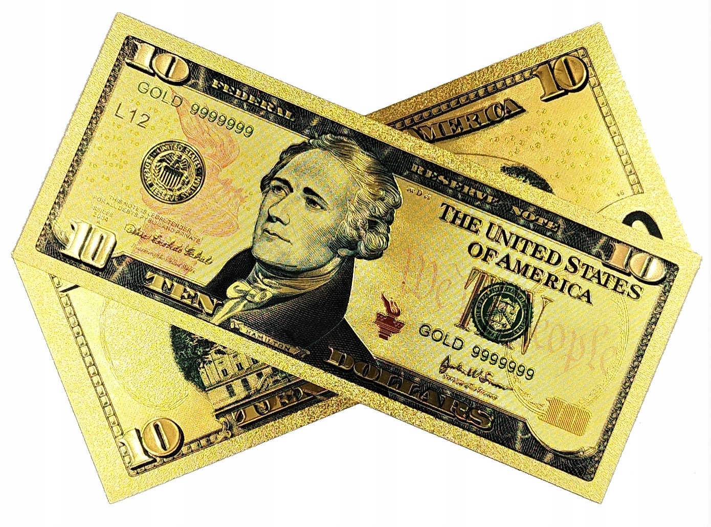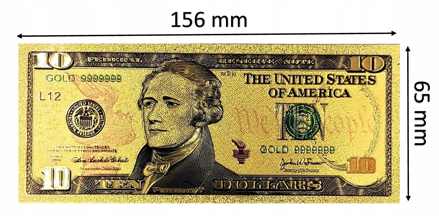 КОЛЛЕКЦИОННАЯ ПОЗОЛОЧЕННАЯ БАНКНОТА 10 ДОЛЛАРОВ США