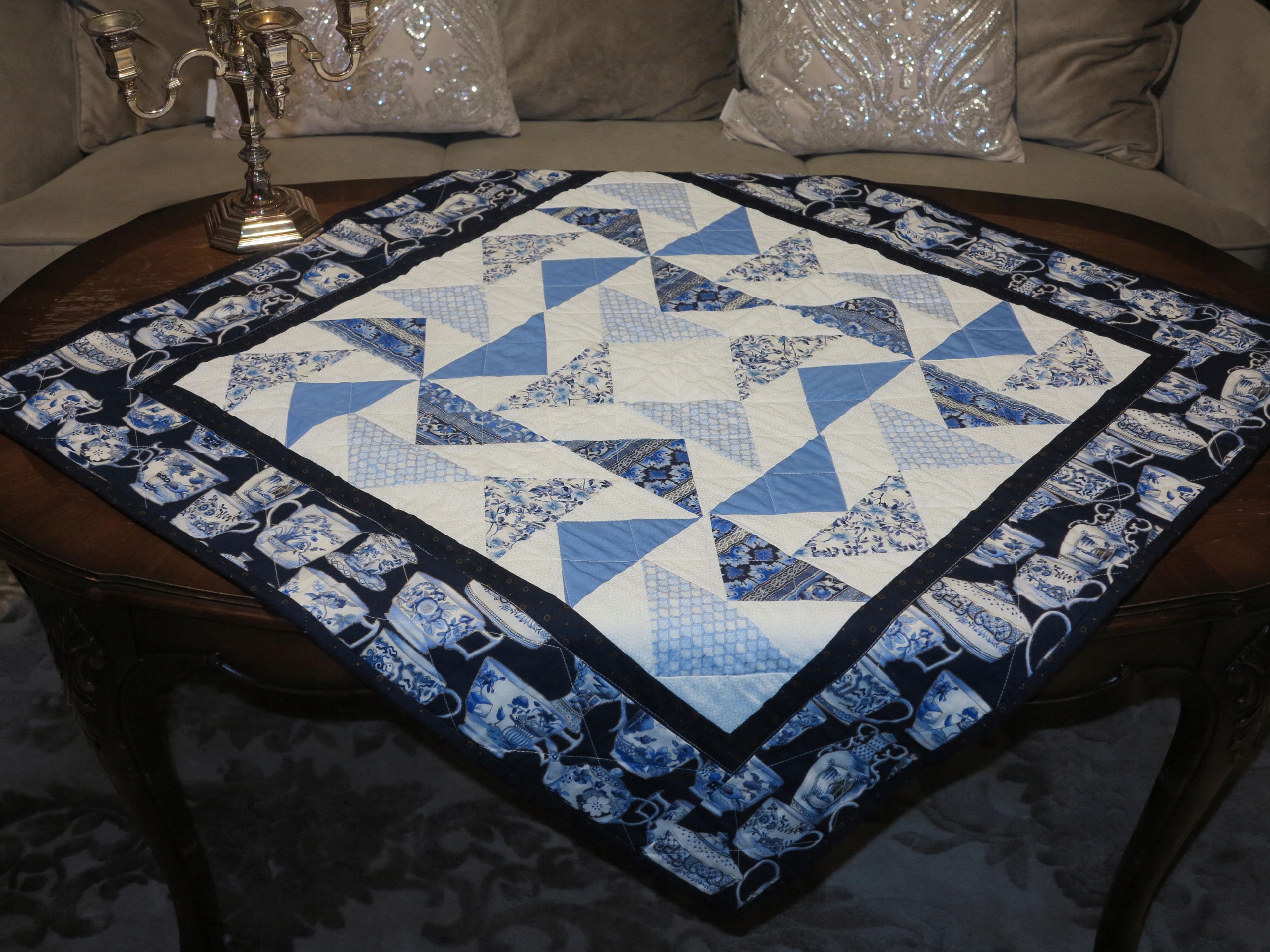 Тема аукциона - это лоскутная скатерть ручной работы с красивой кухонной посудой, в цветах кобальта, матовая золотой. Он имеет размеры: 87/87 см. Использовала скатерть, но в супер хорошее состояние и качество. Я рекомендую