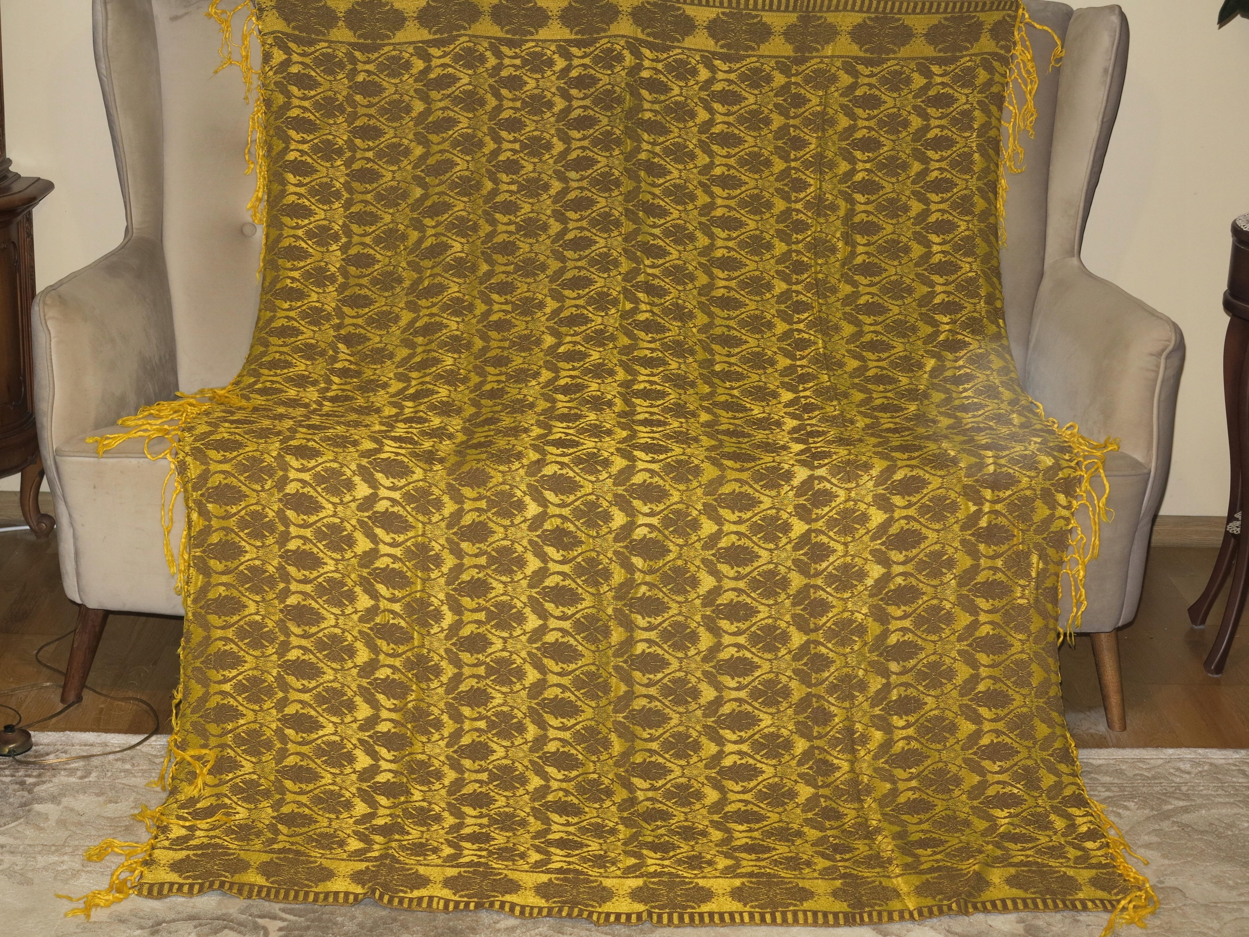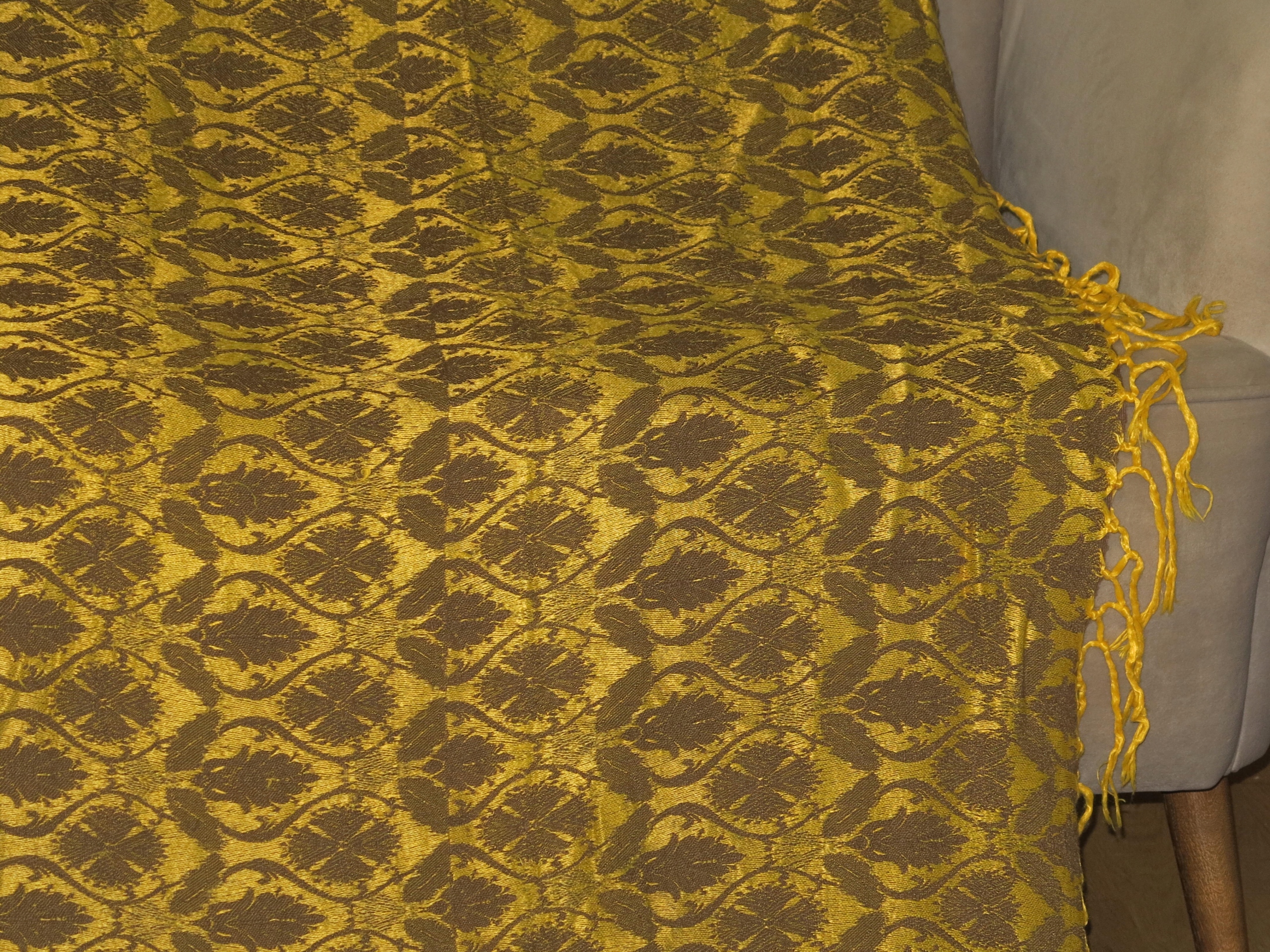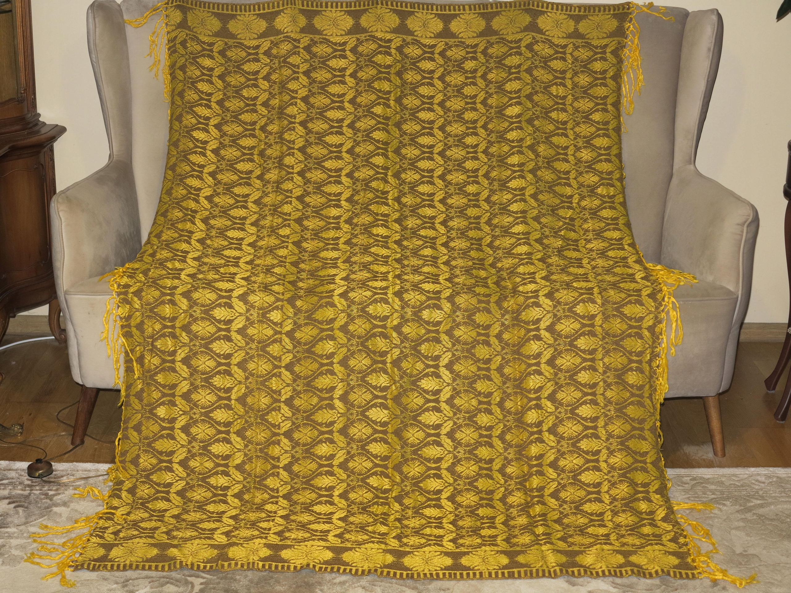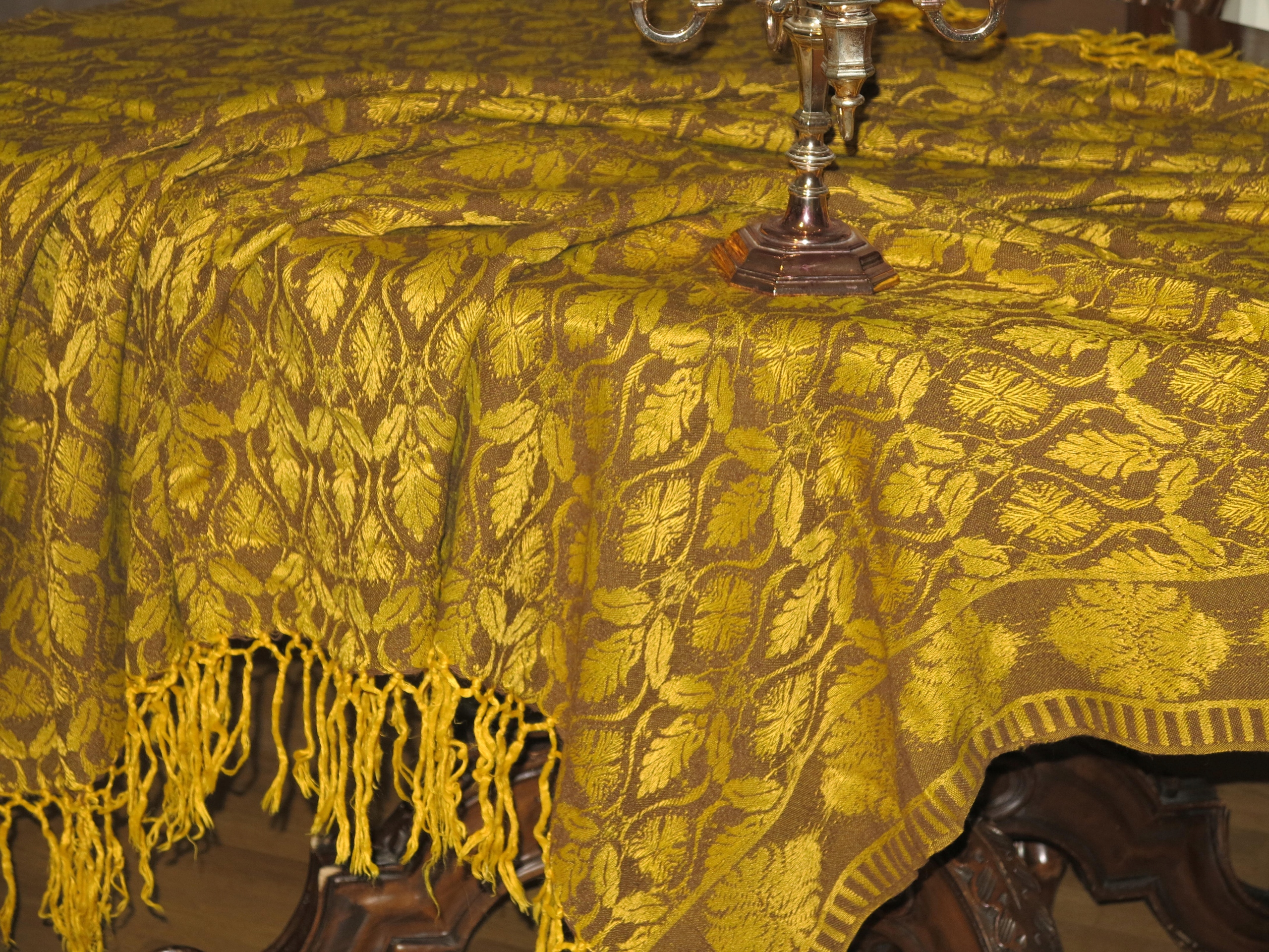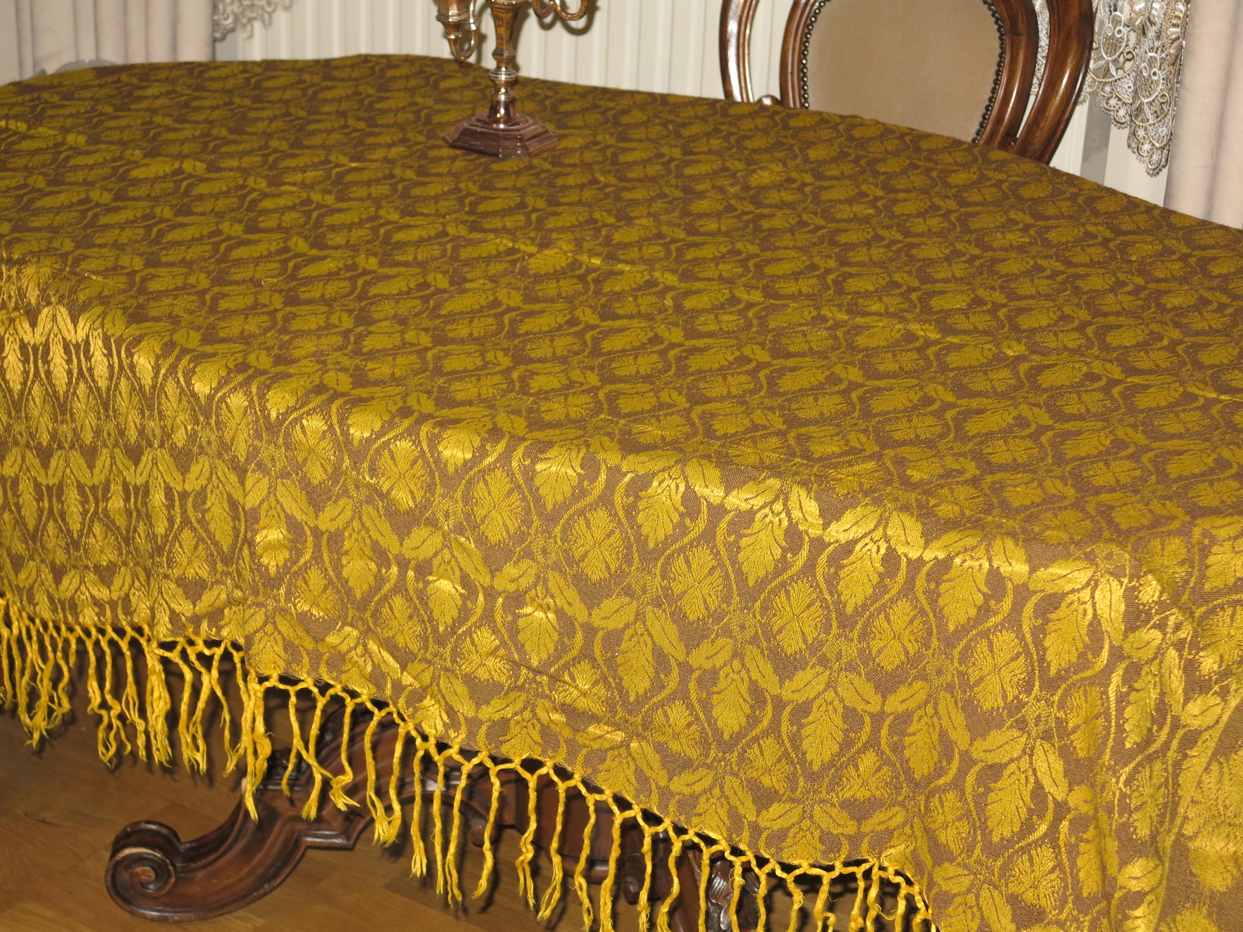 для знатока, красивой, вековой, стильной, двусторонней скатерти с двусторонней окраской. Длинные полосы связаны с двух сторон. Цвета коричневого и медового золота