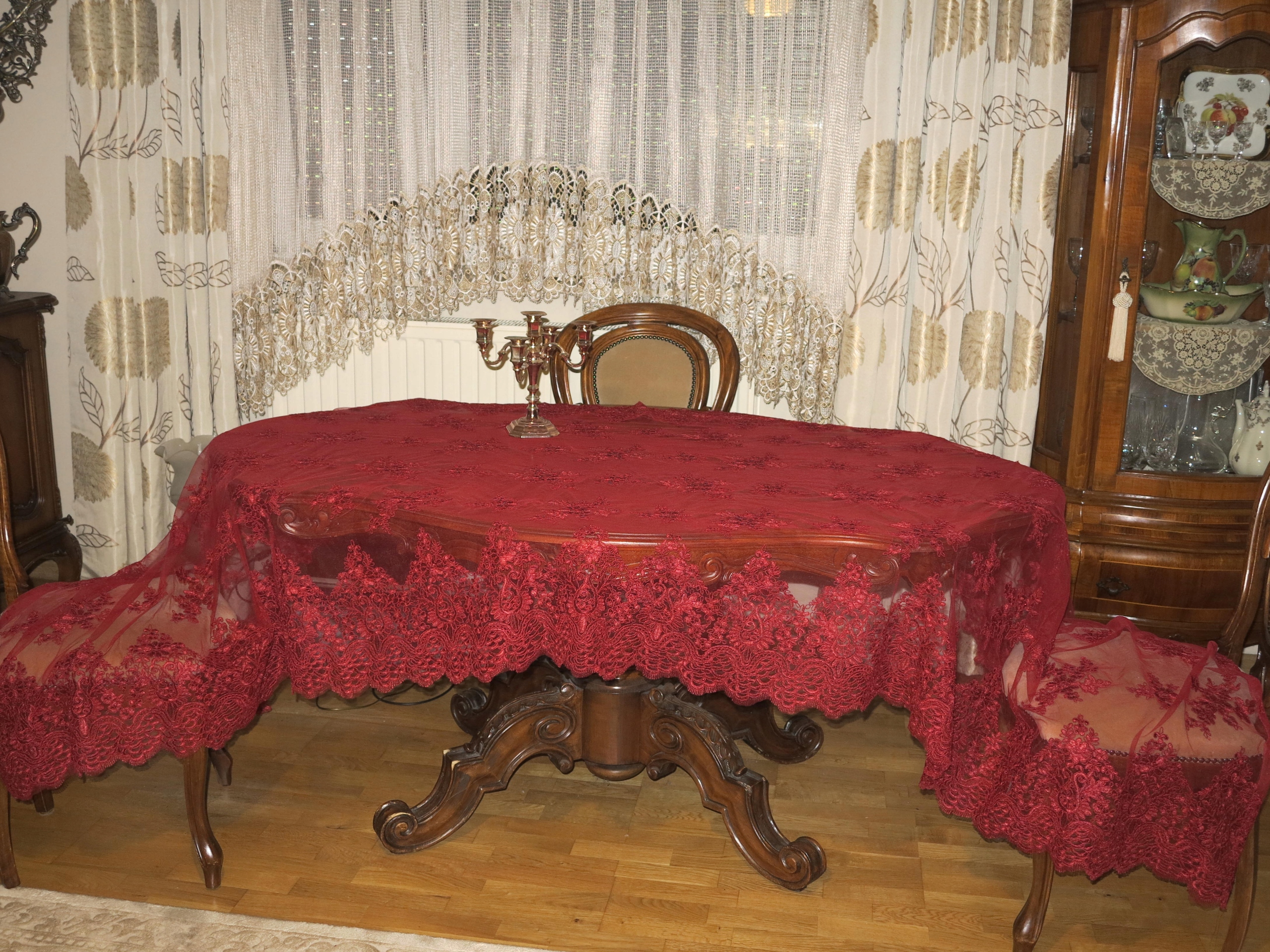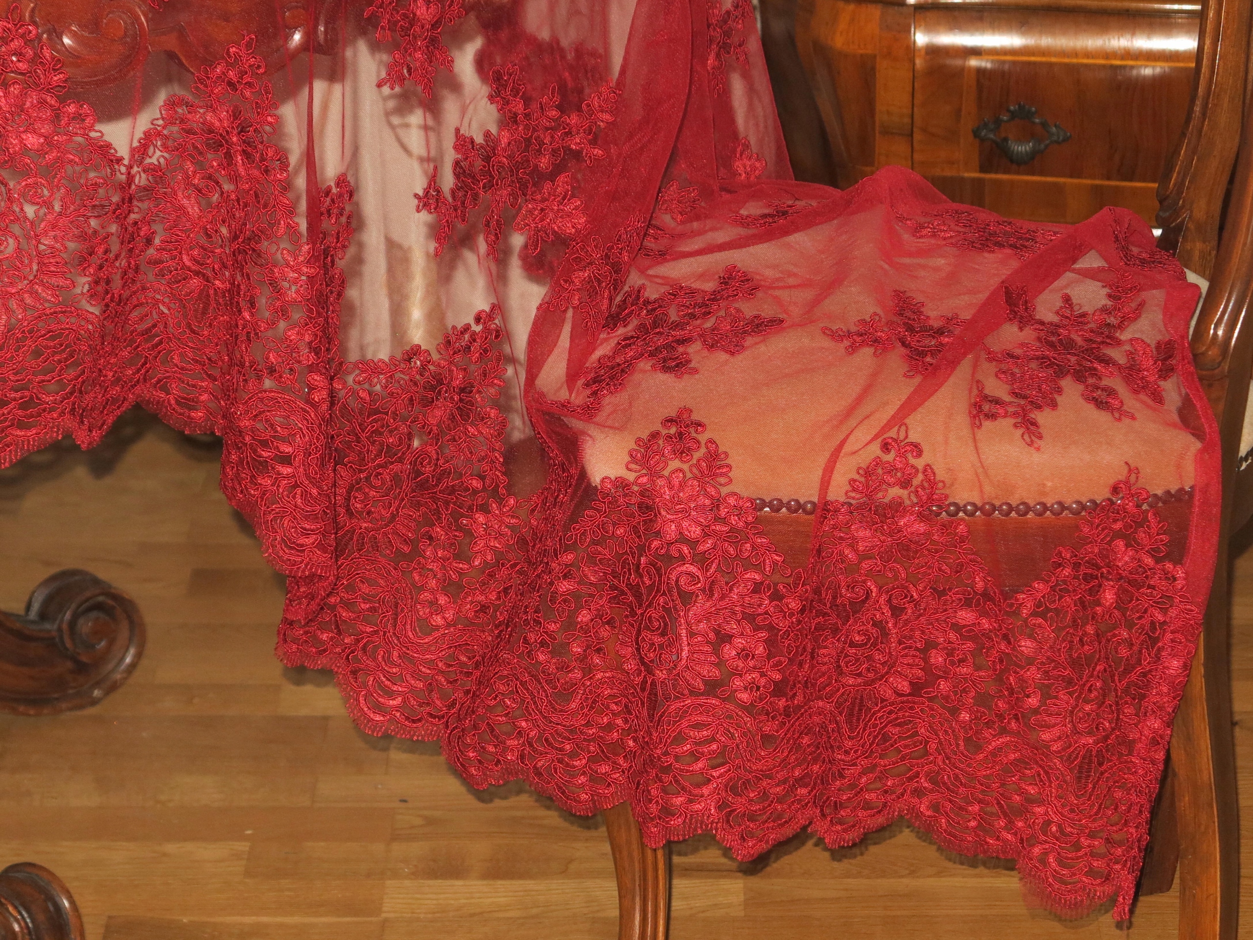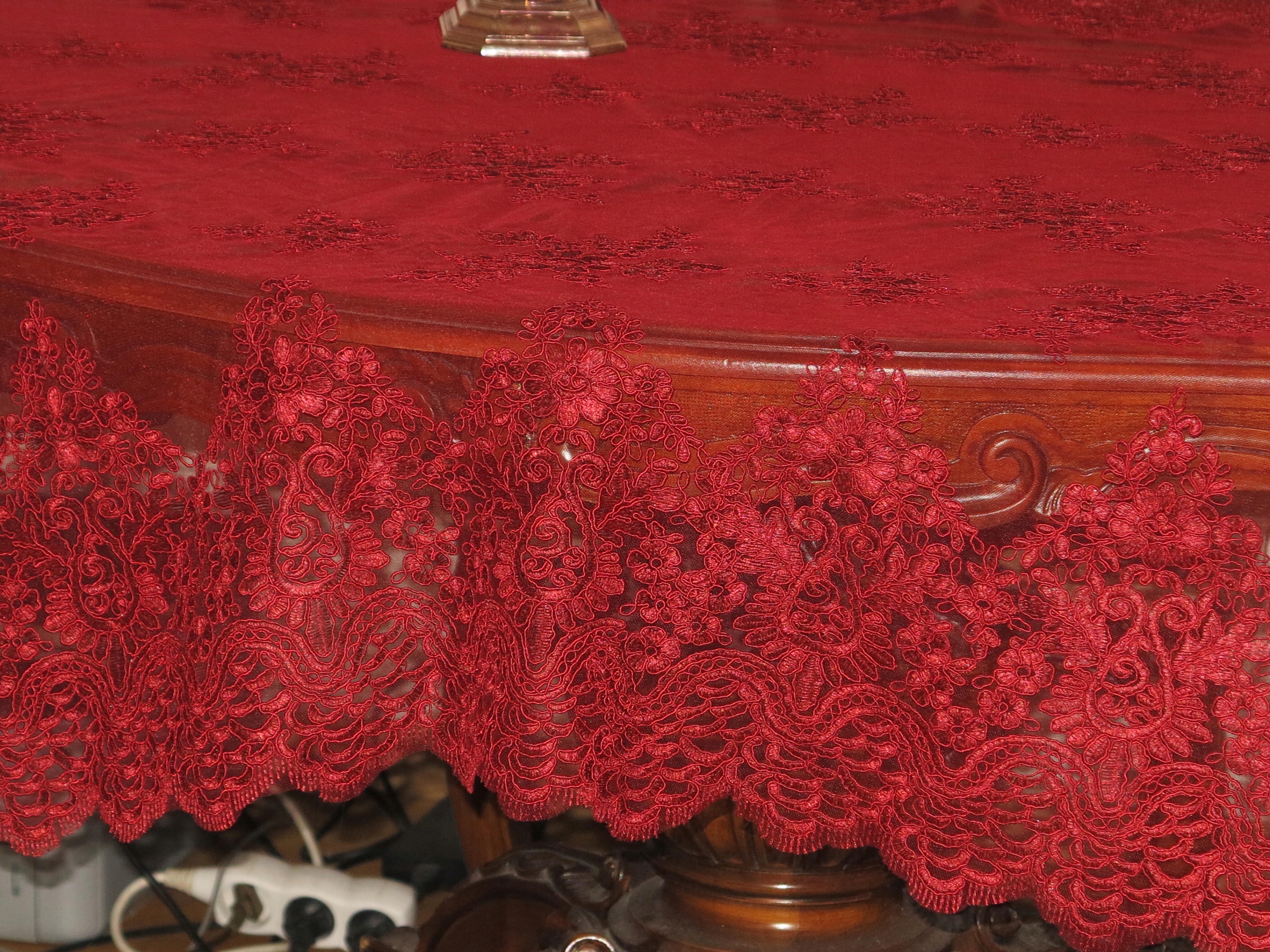 Предмет аукциона красивая кружевная скатерть, декоративная ткань, бордовая занавеска. Длина: 316 см, ширина: 134 см. Я искренне рекомендую это. Для ценителя красоты.