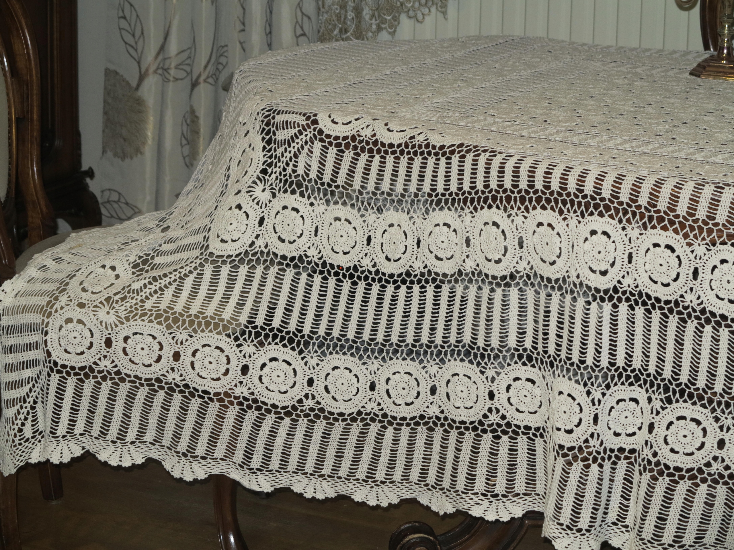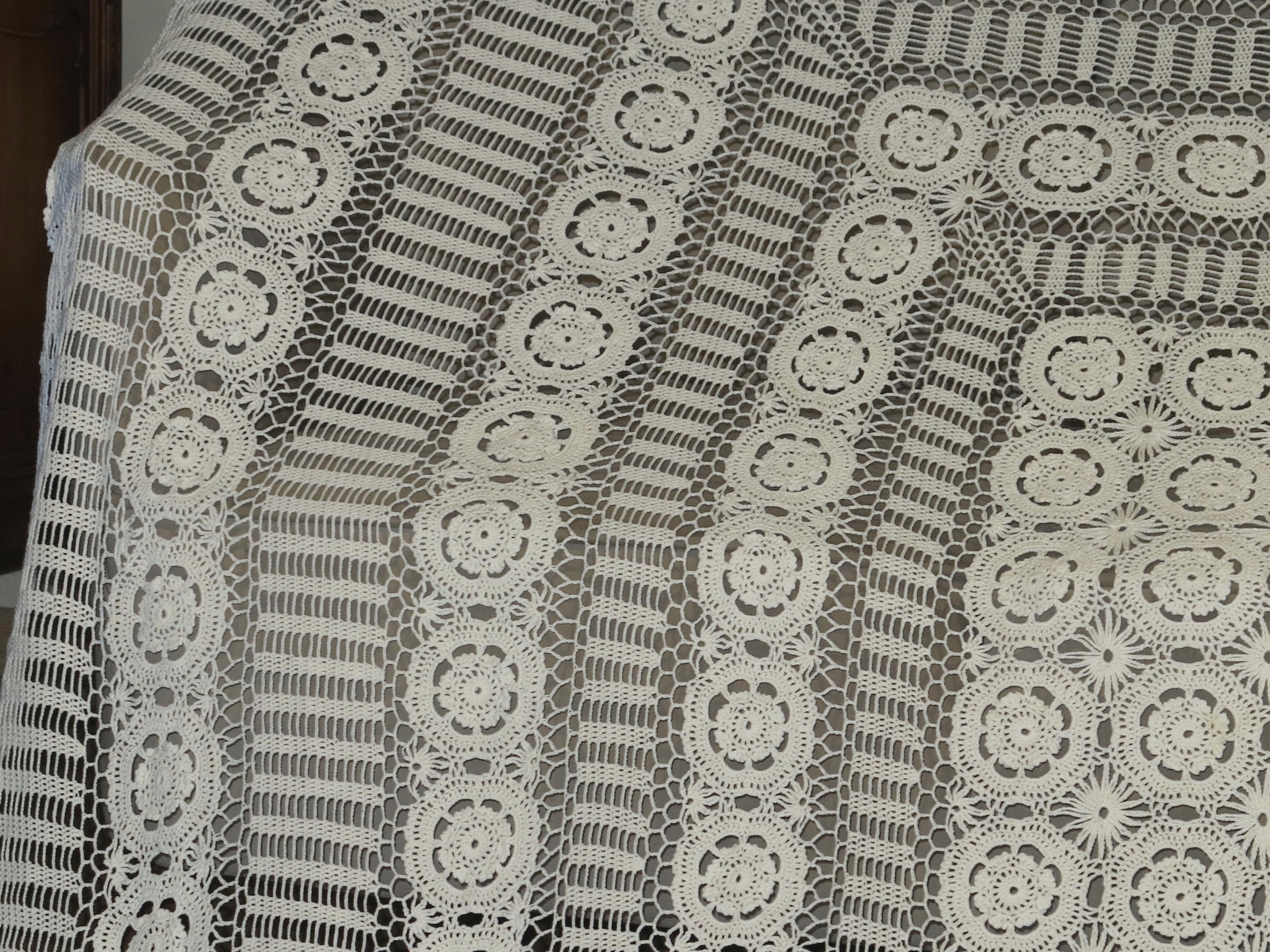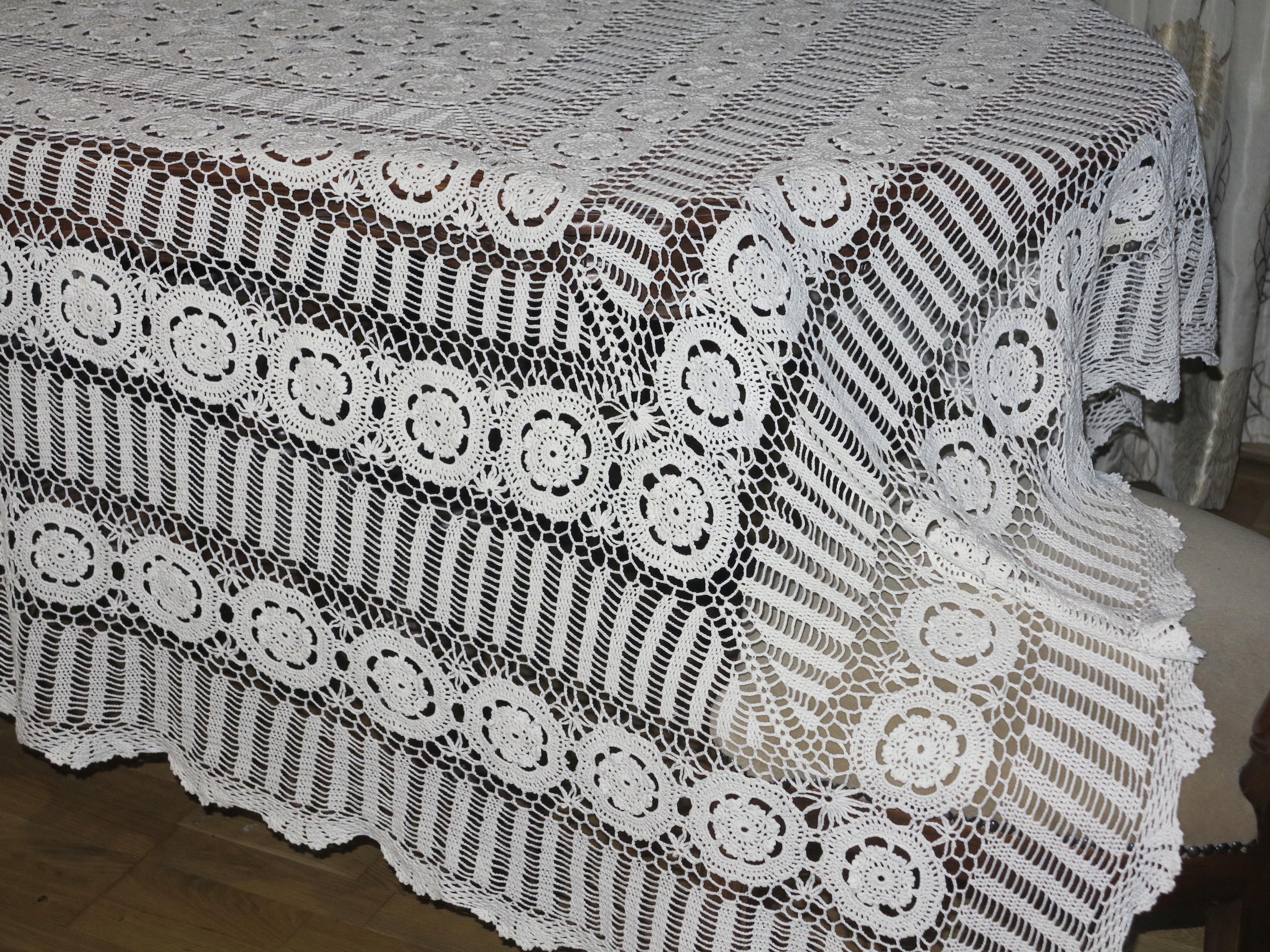 Красивая огромная и сплошная костяная скатерть в крючке розетка 240/192