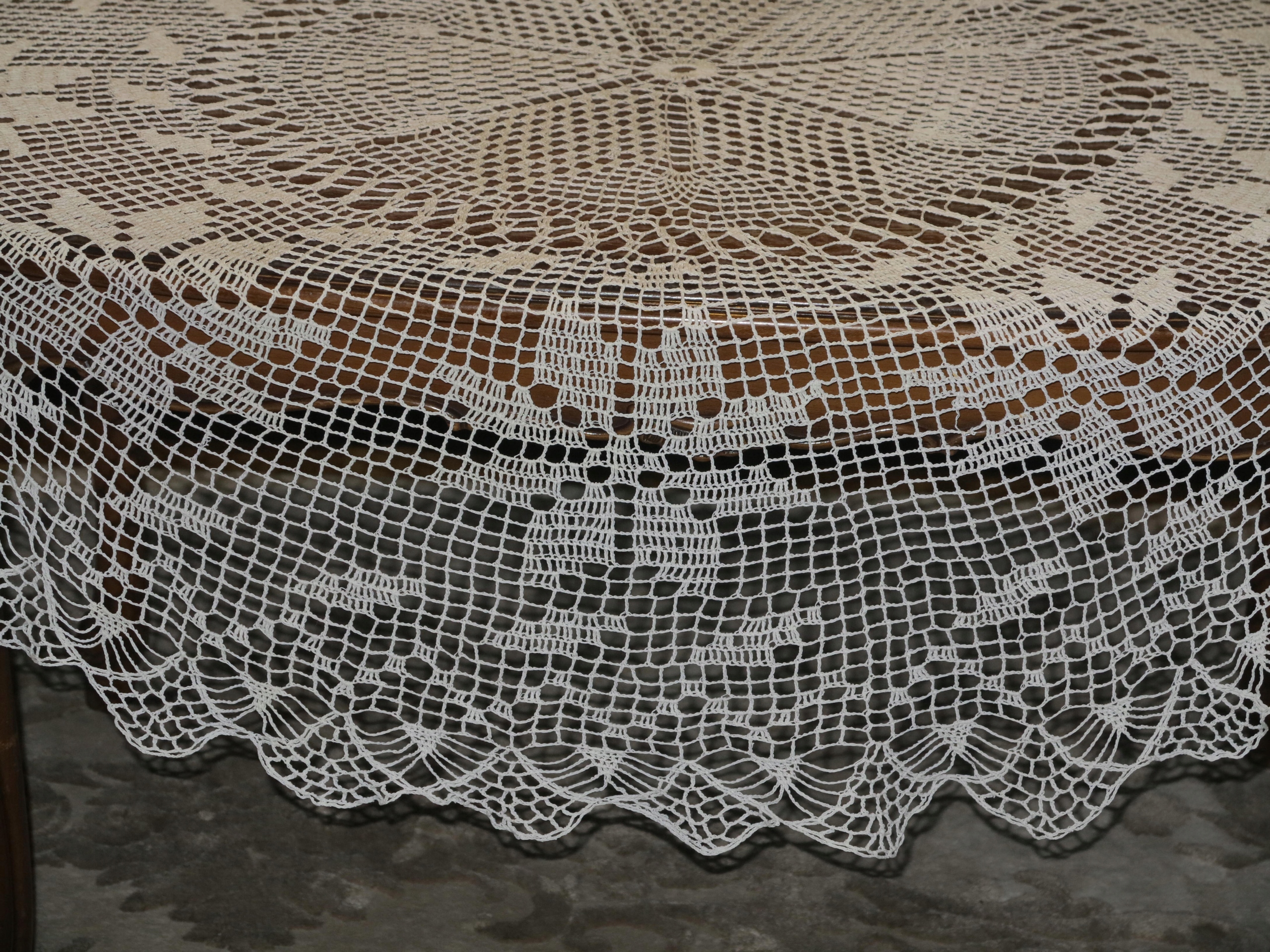 Объект аукциона -красивая, ручная скатерть, сделанная из хлопчатобумажного шнурного шнура, в сложной схеме. Имеет размеры: диаметр: 147 см. Использовалась скатерть, в очень хорошем состоянии. Я рекомендую