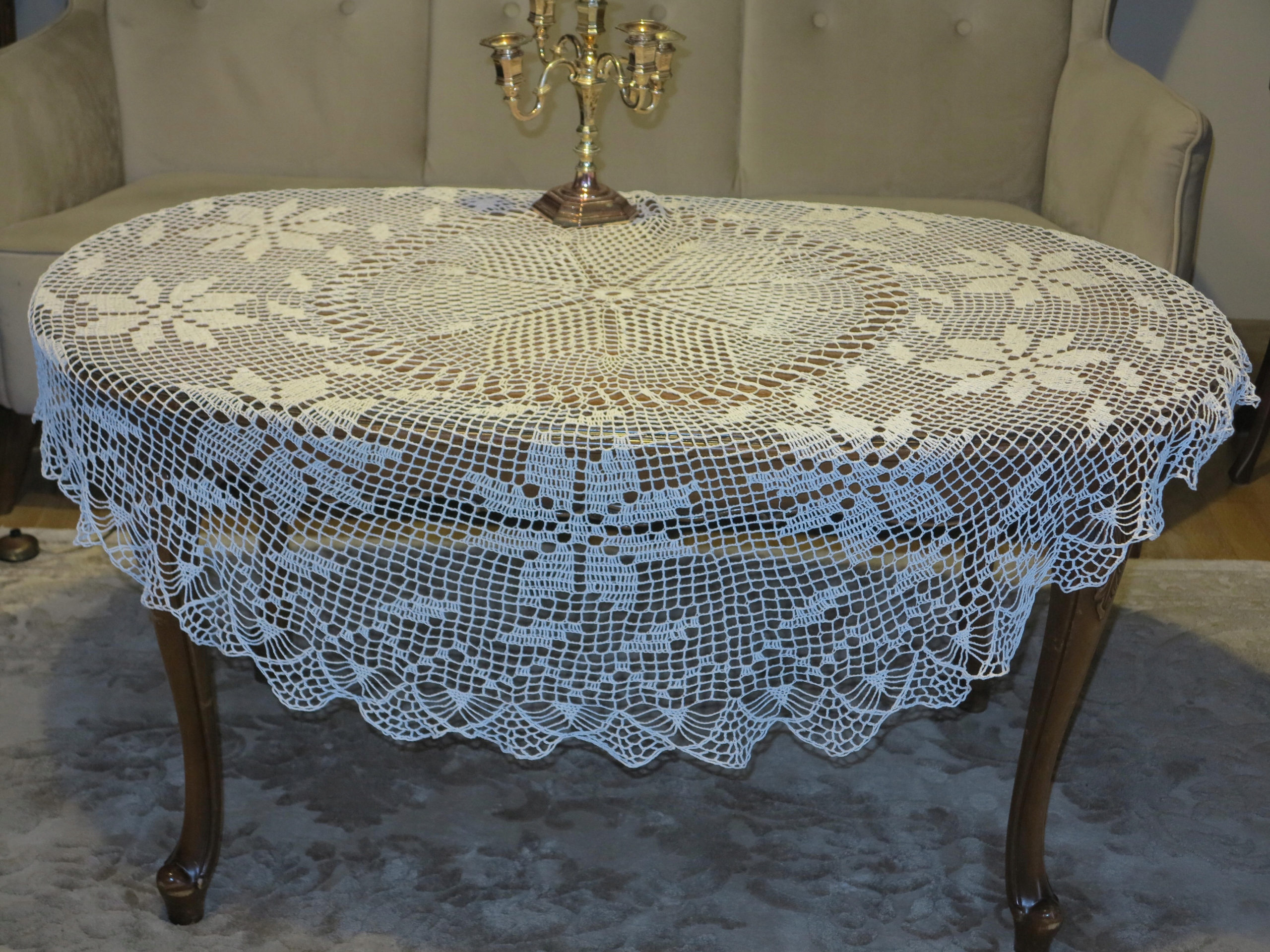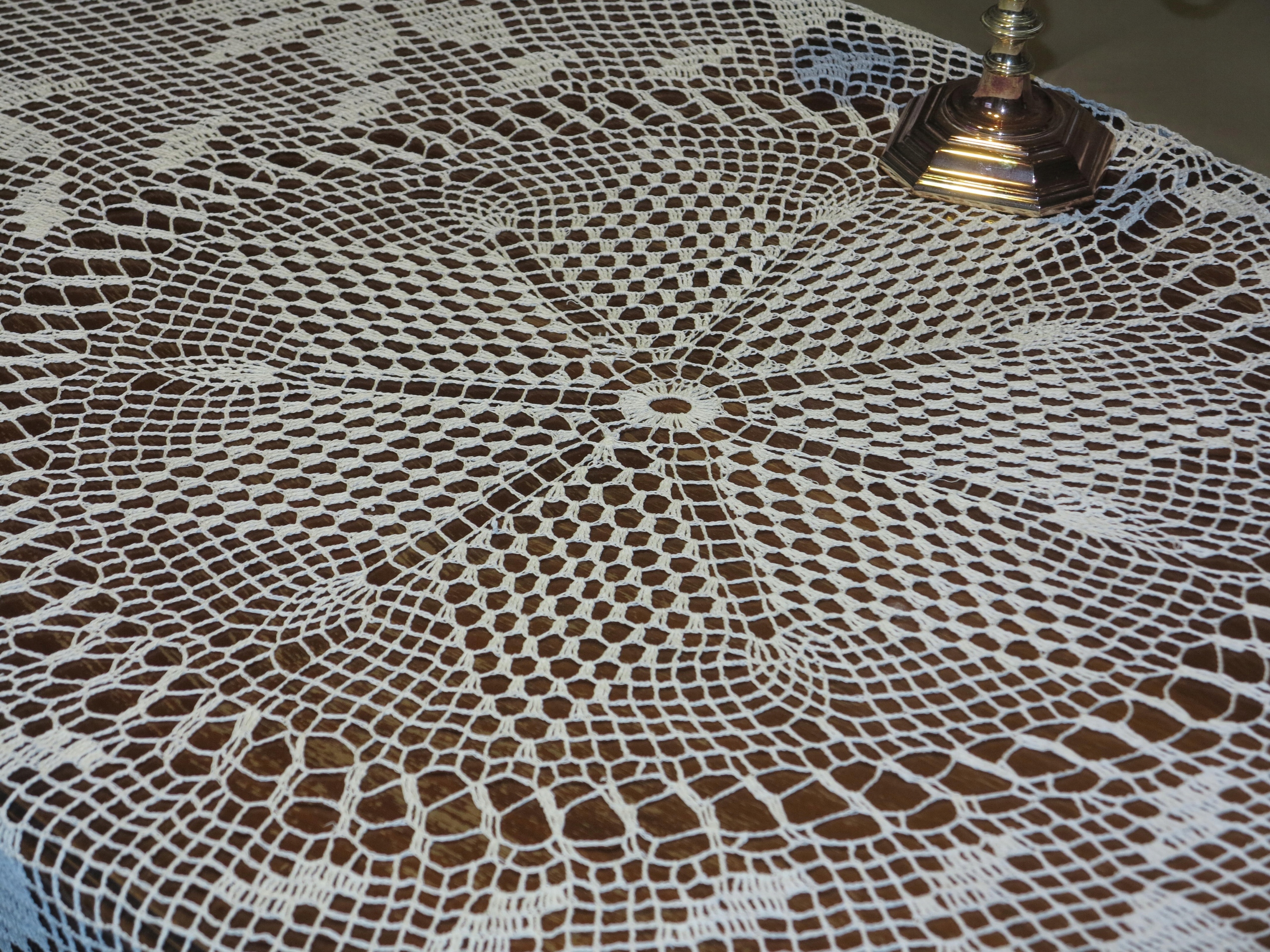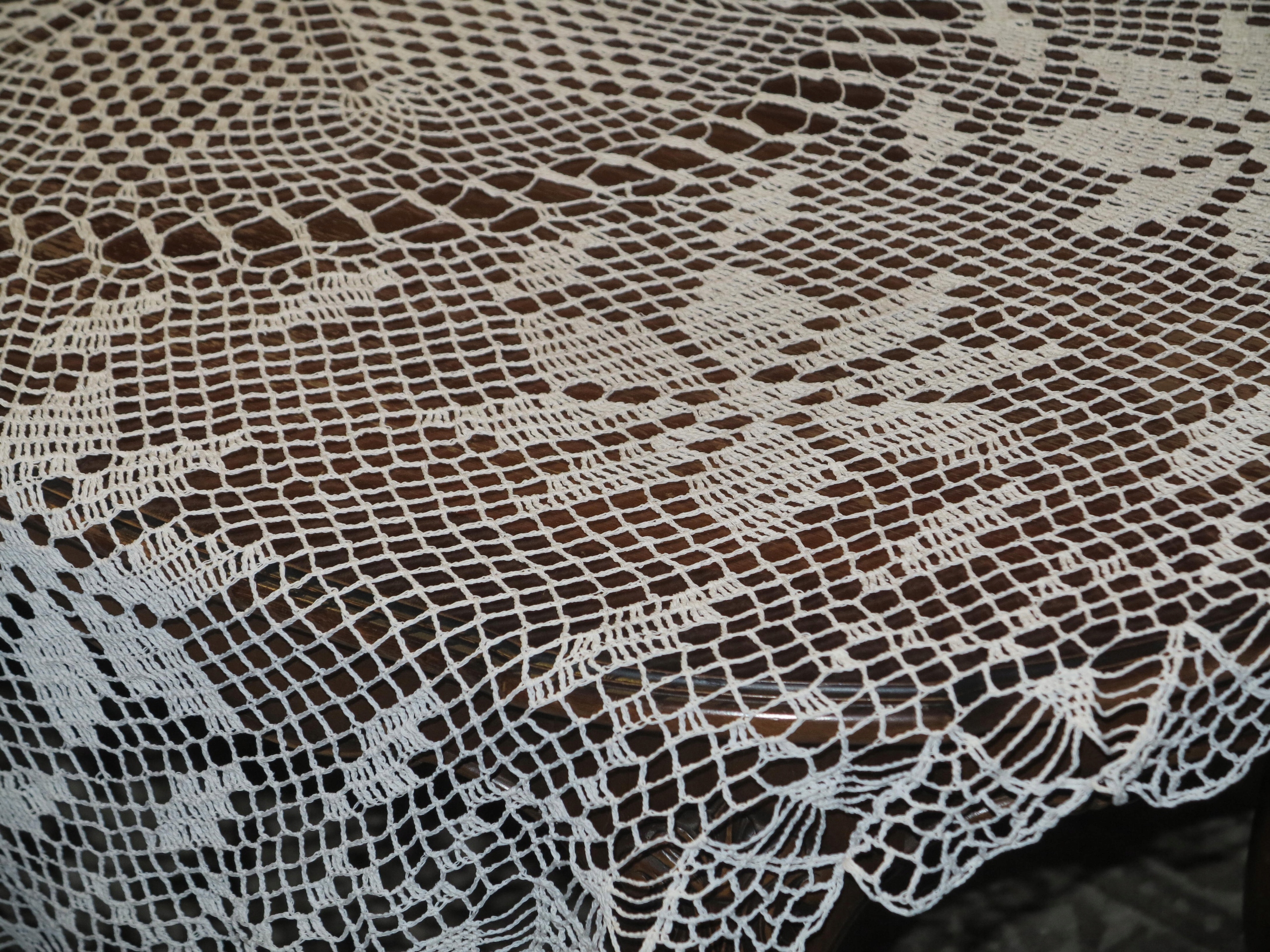 Красивая большая замысловатая ручная скатерть шнур 147 см.