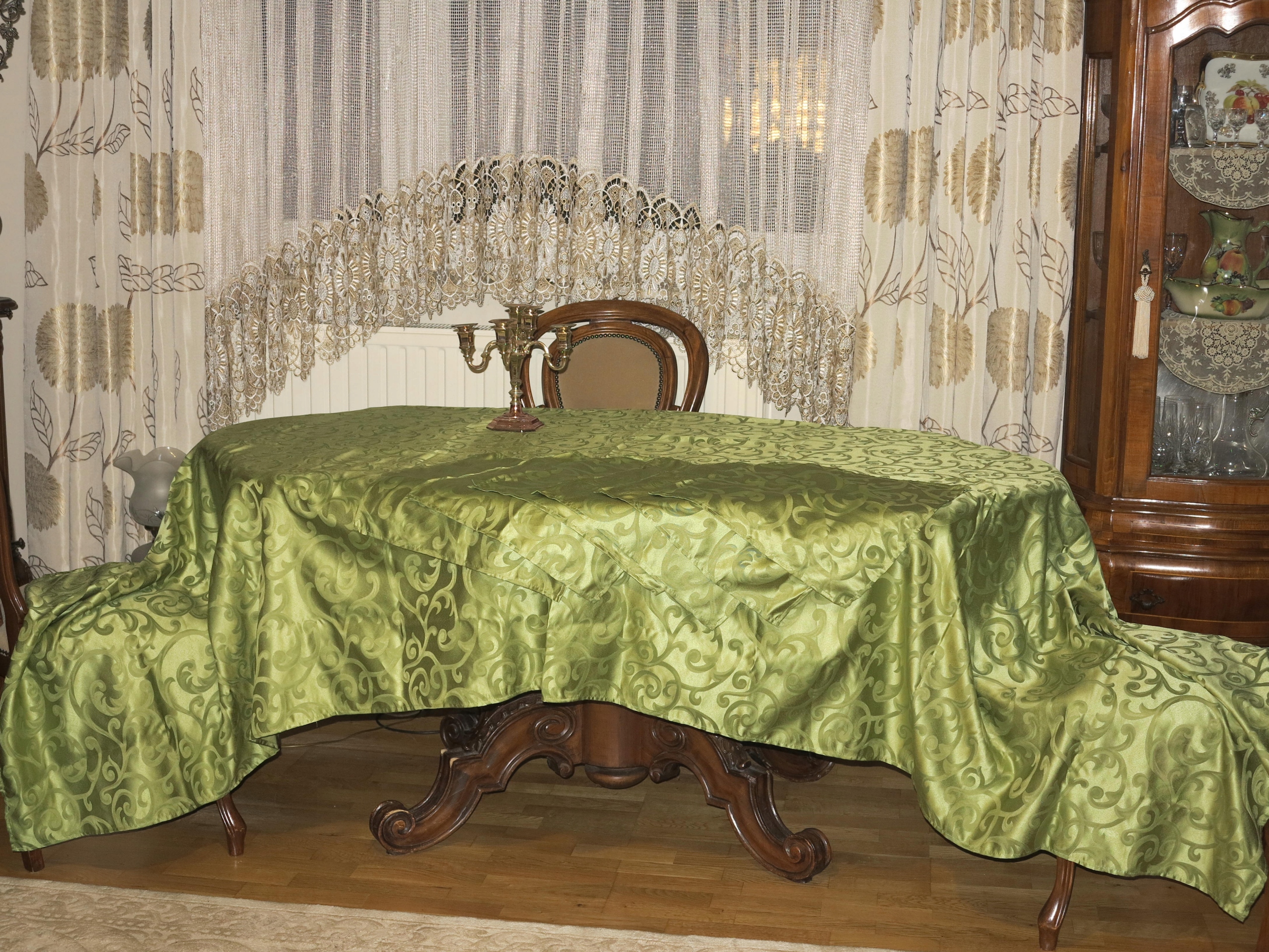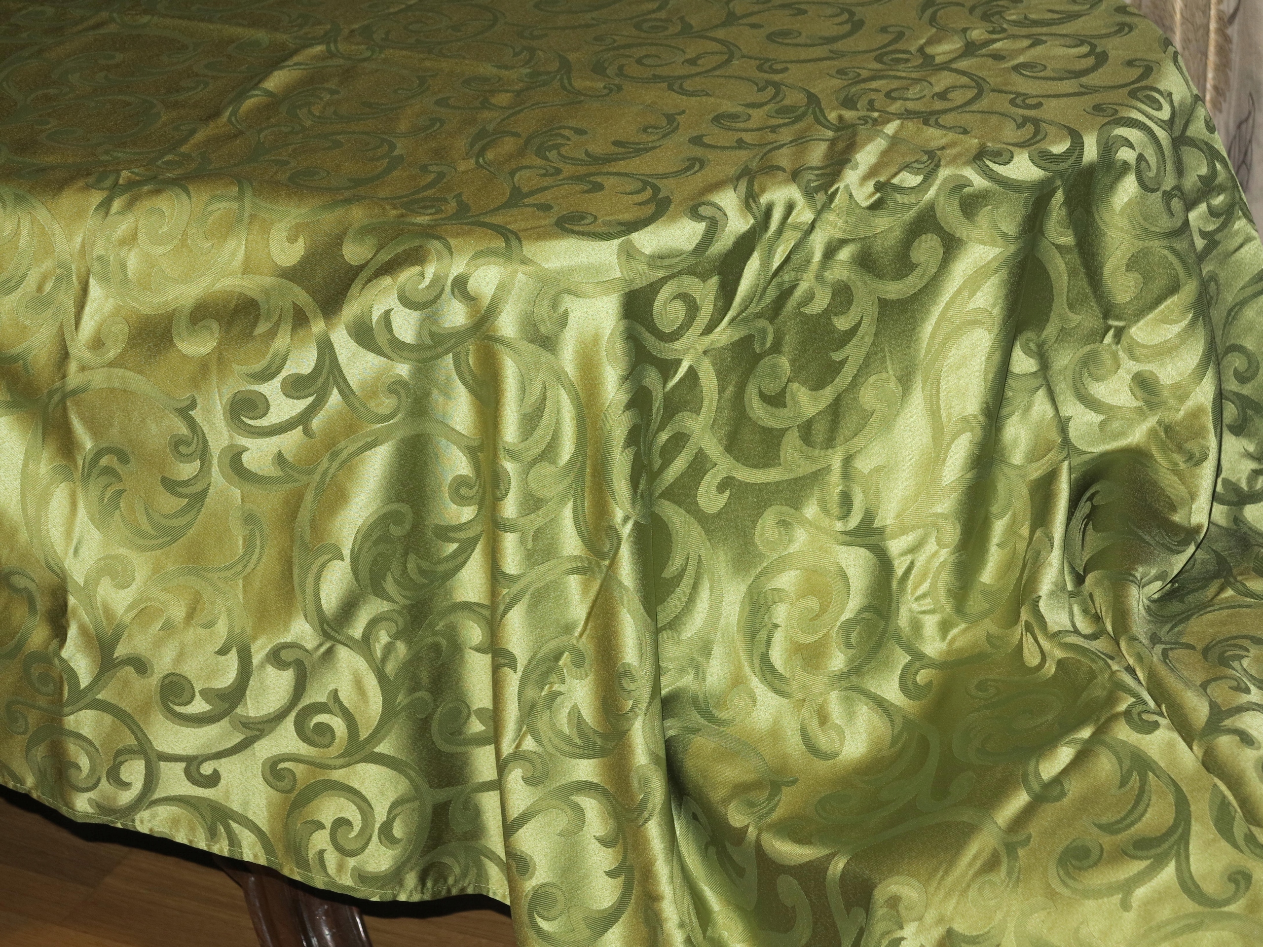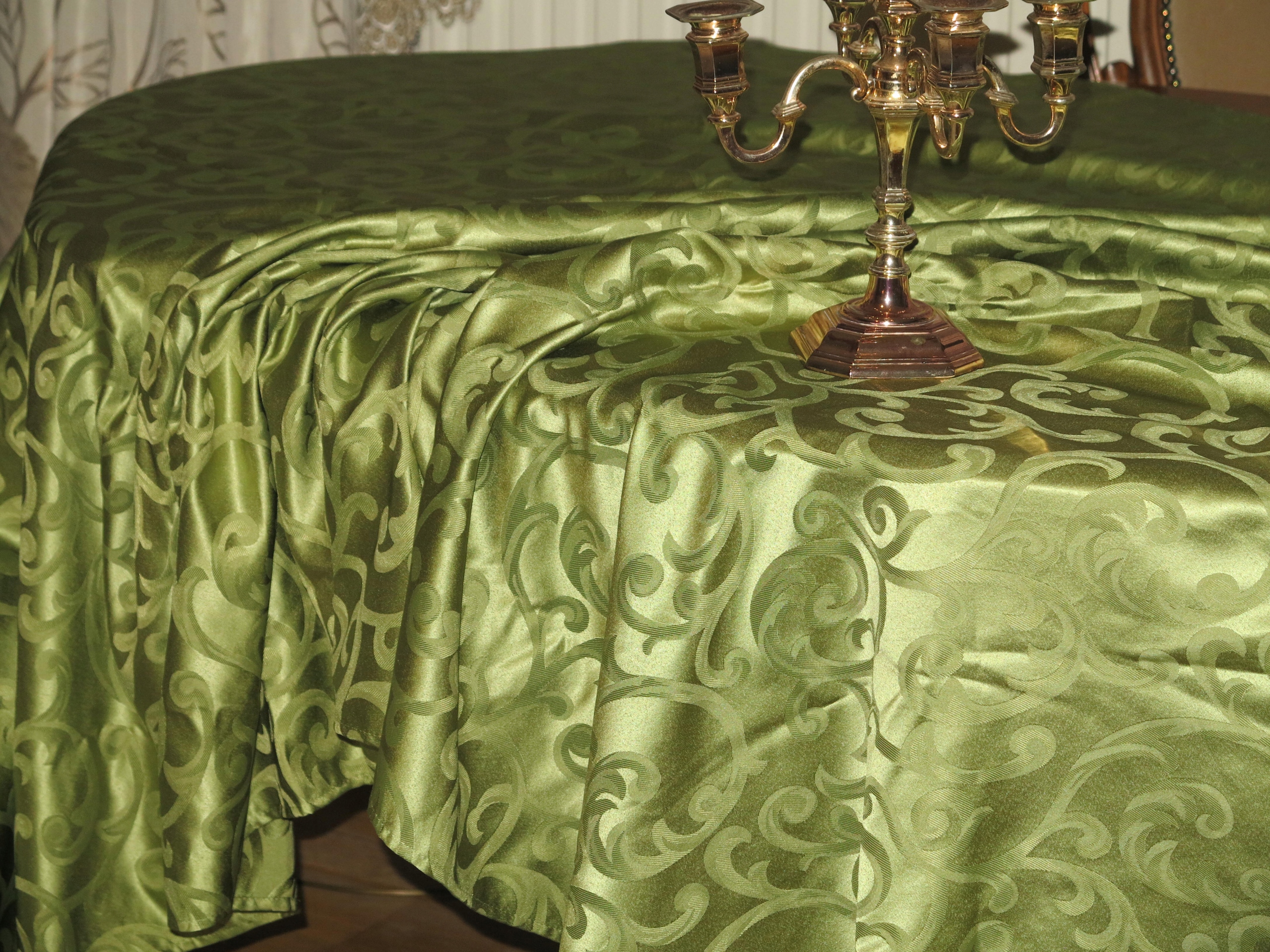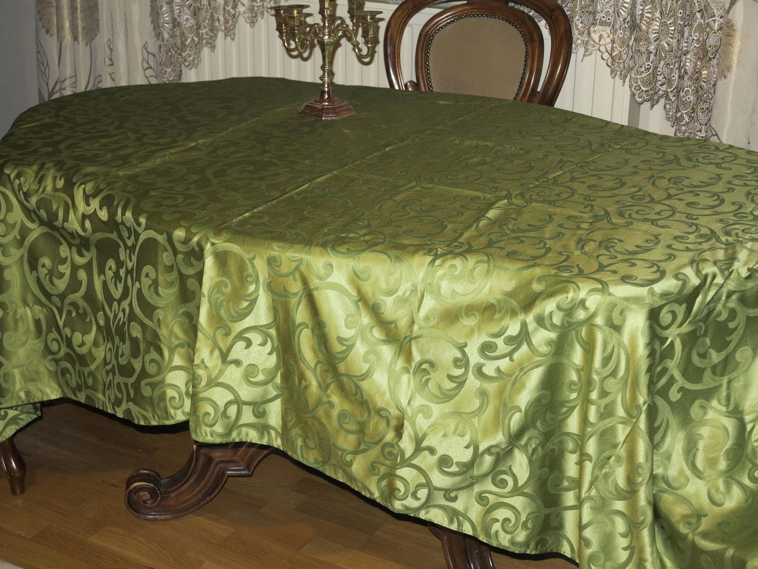 Красивая зеленая огромная скатерть+ 6 салфетка со стильными узорами 295/148