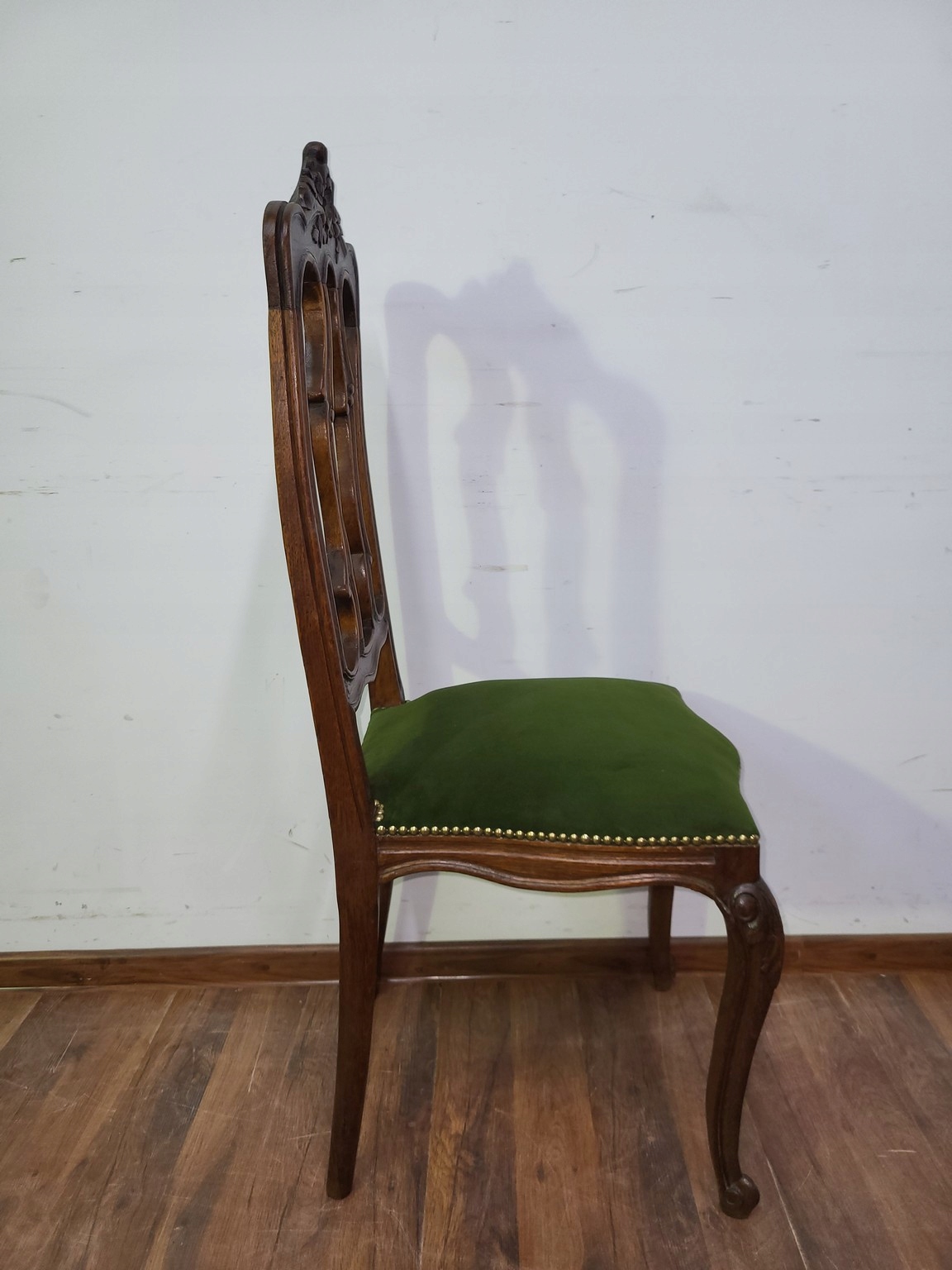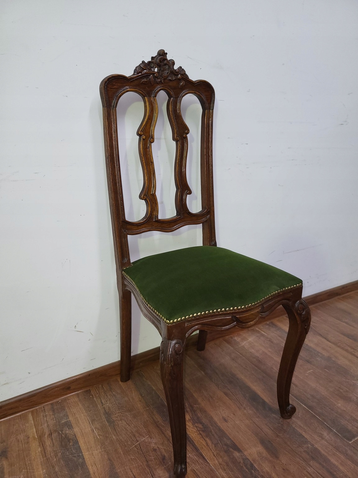 Красивый комплект из 6 стульев Rocaille. Комплект изготовлен из древесины дуба. Страна происхождения Франция. Устойчивые стулья. Новый бархатный материал обивки. Сиденья на пружинах.