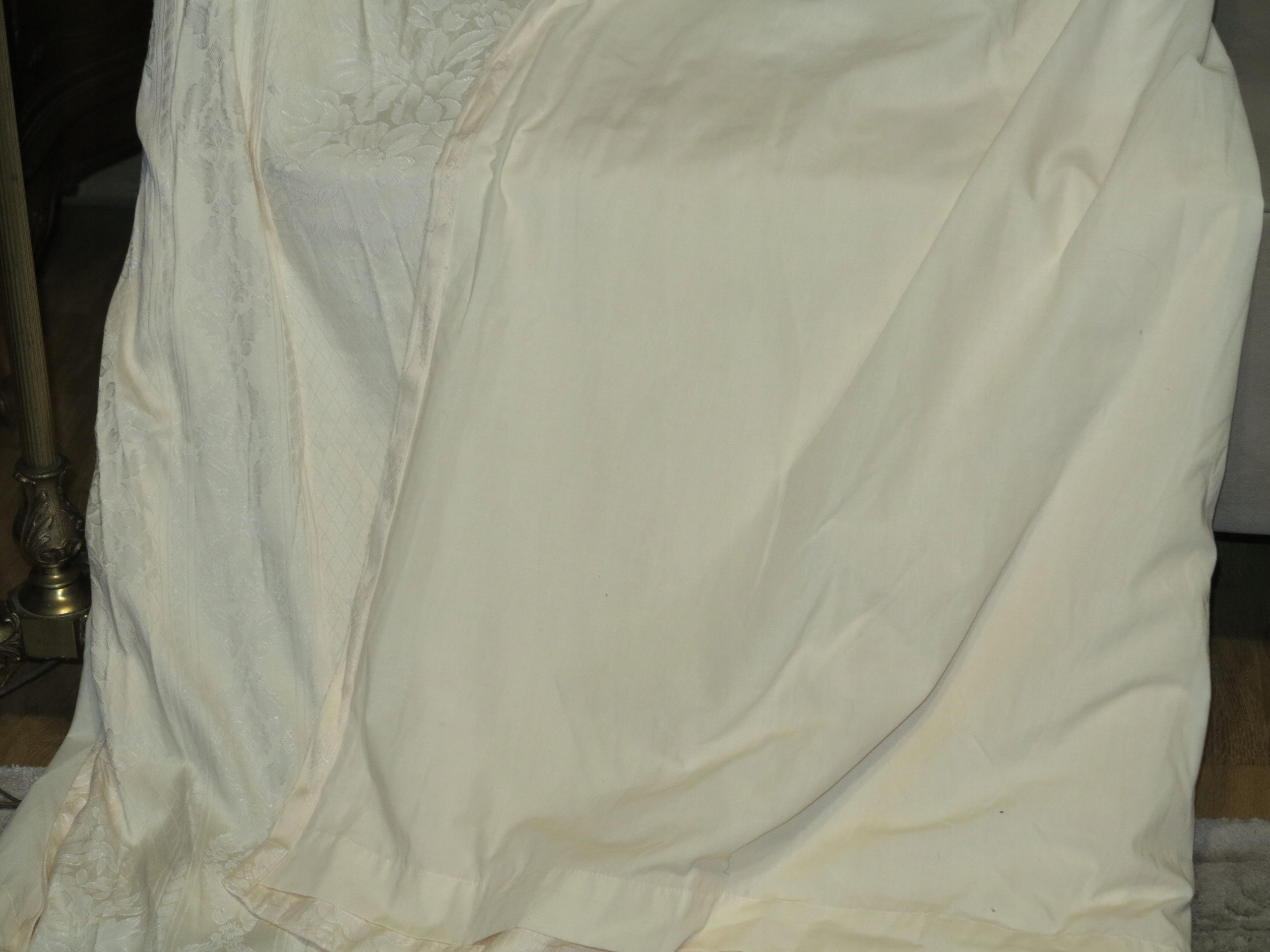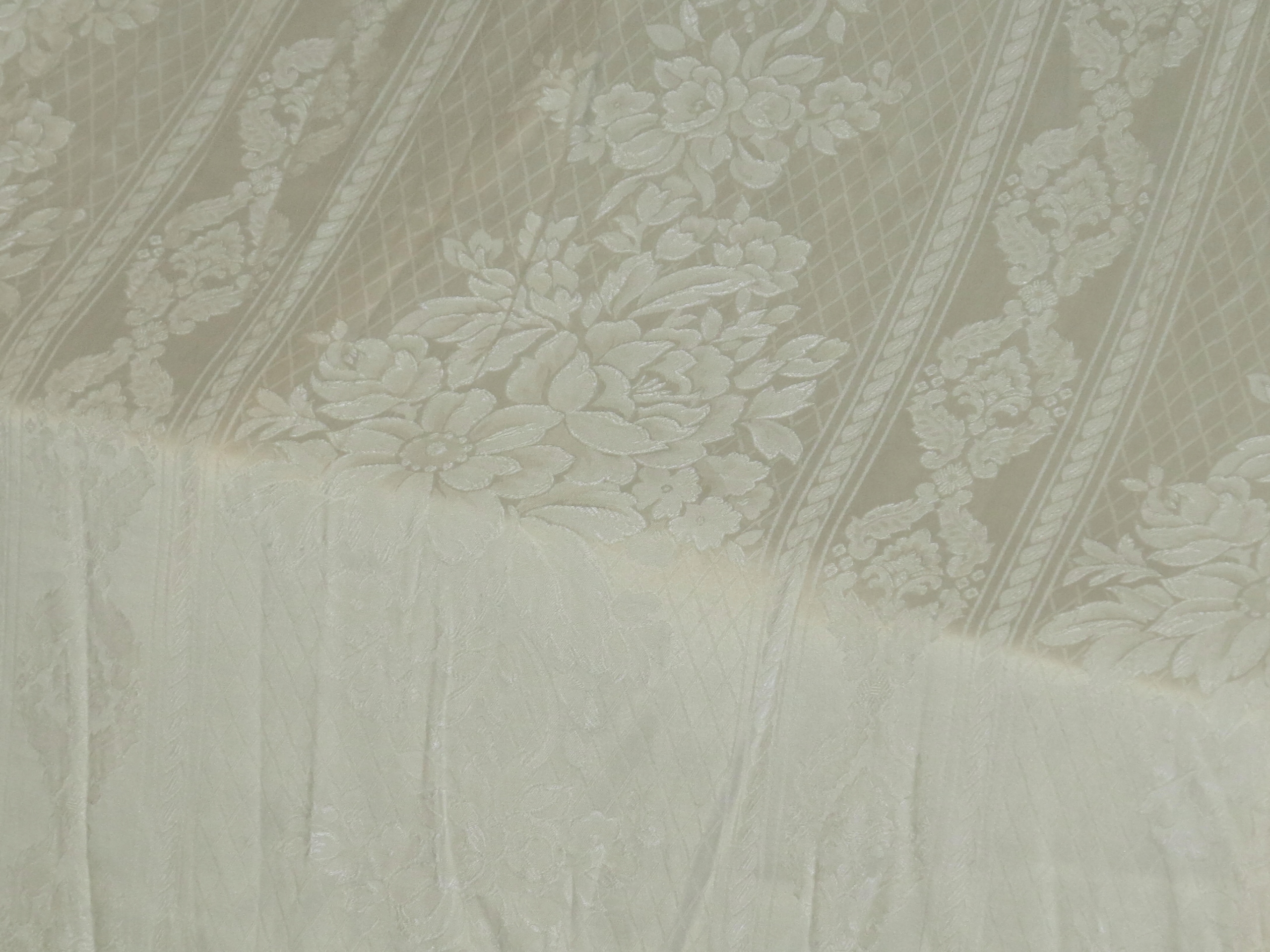 НАБОР КРАСИВЫХ АНГЛИЙСКИХ УЗОРОВ СО ШТЕМПАННЫМИ ЦВЕТОЧНЫМИ УЗОРАМИ. ШТОРЫ ИЗ МЯГКОЙ ТКАНИ ОТЛИЧНОГО КРЕМОВОГО ЦВЕТА.