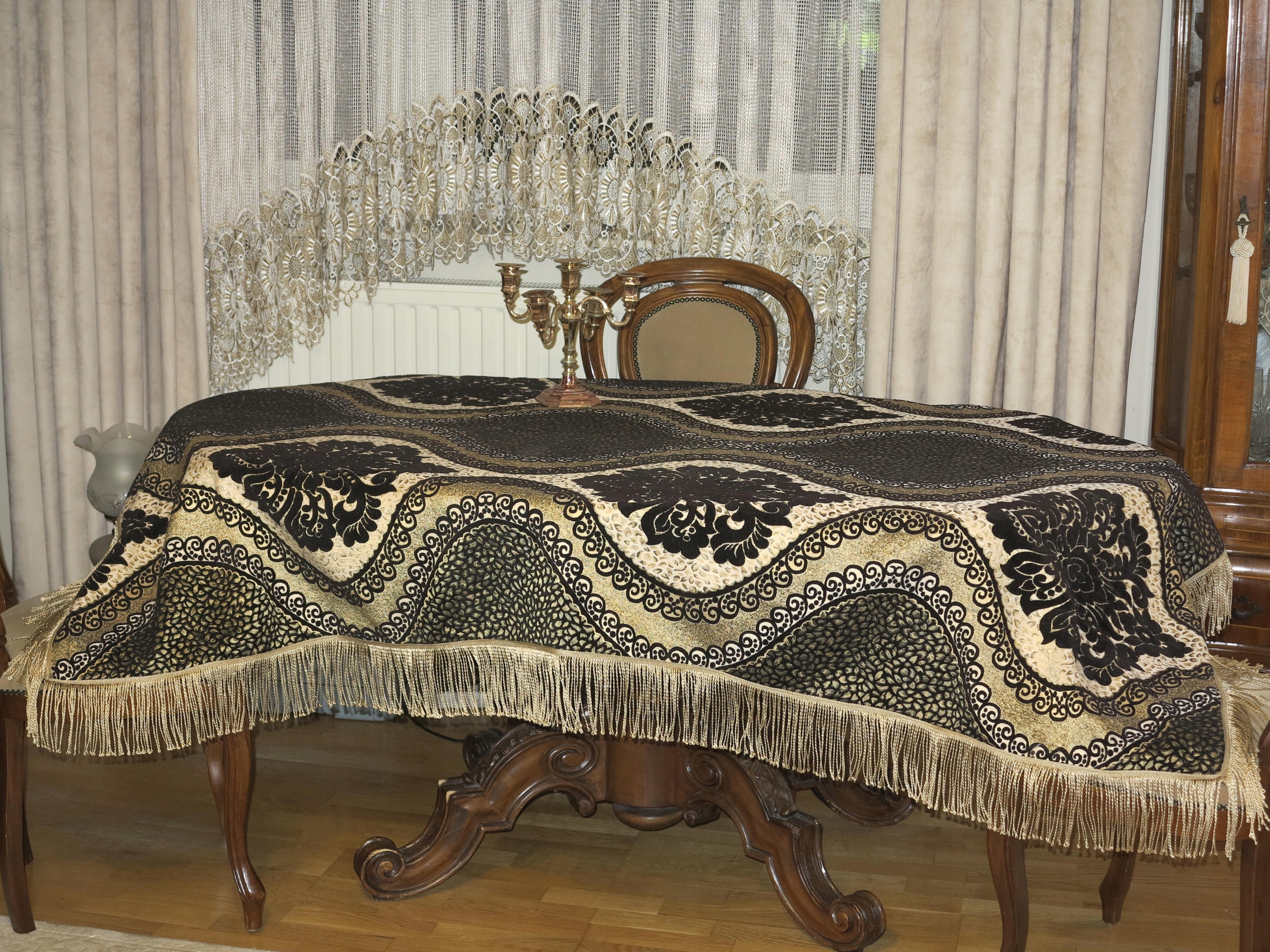 Чрезвычайно красивый стильный крупный наволочка, изготовленный из толстого и очень твердого гобелена, с бархатным стильным дизайном и acanthus. С трех сторон, отделанных с толстой декоративной веревкой. Наволочки в черном и золотом