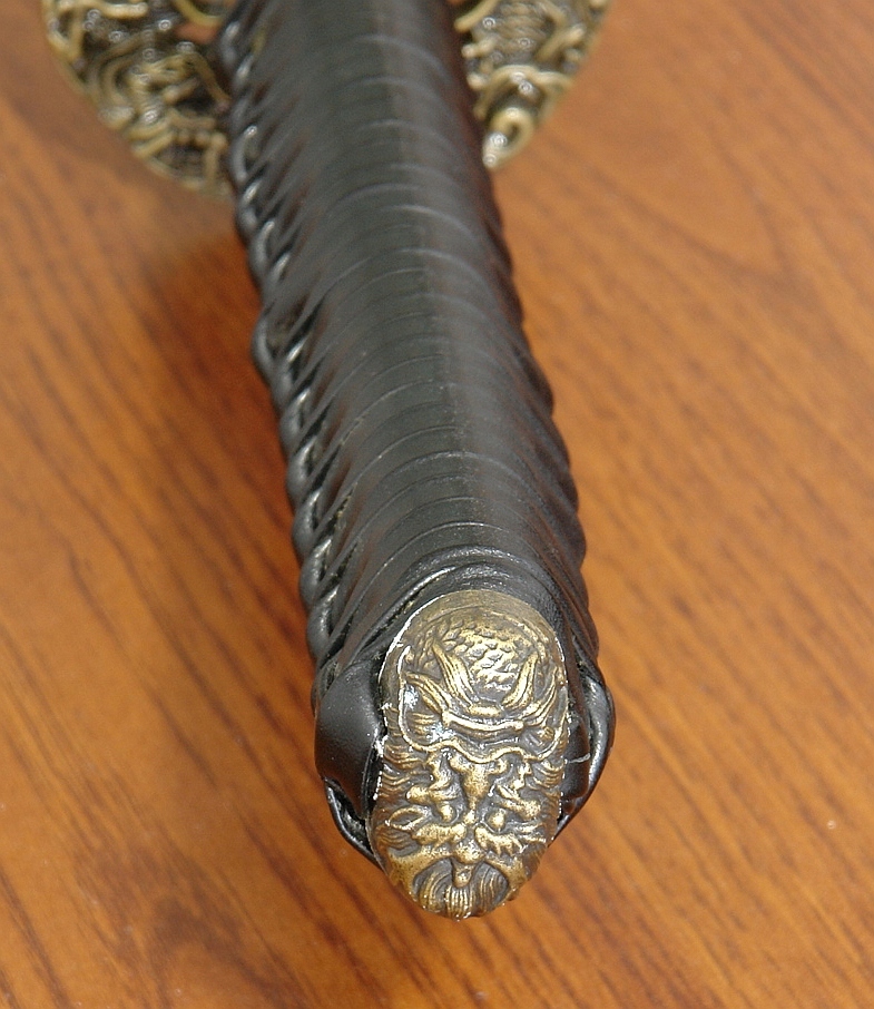 - деревянные ножны (сая) обтянуты эко-кожей с тиснением драконьих мотивов, шелком сагэо (вискоза).