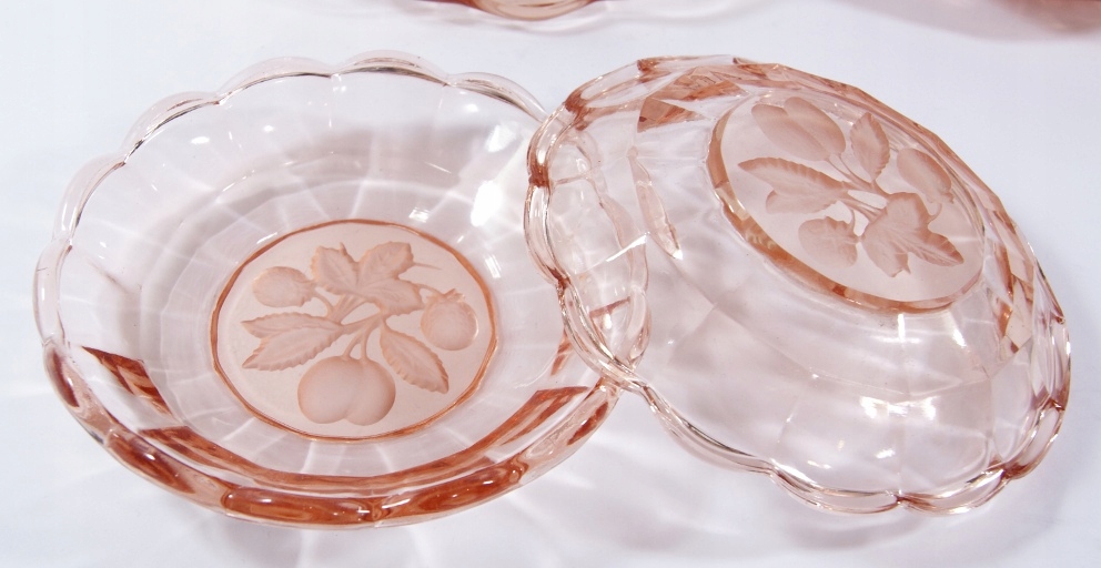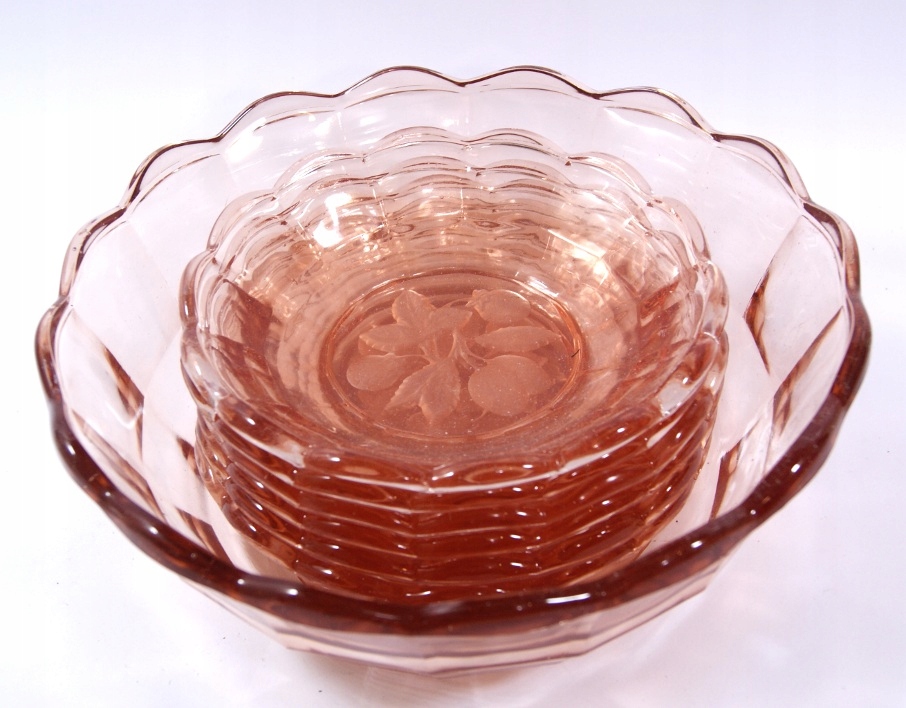 Красивый, старый, розалиновый десертный набор- 6 + 1
