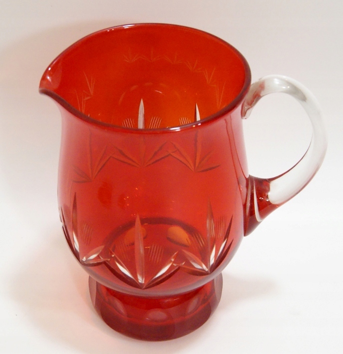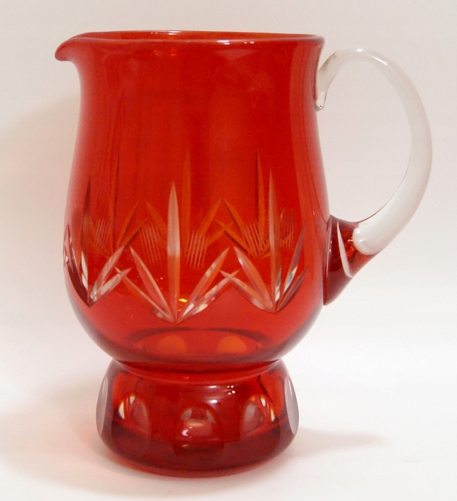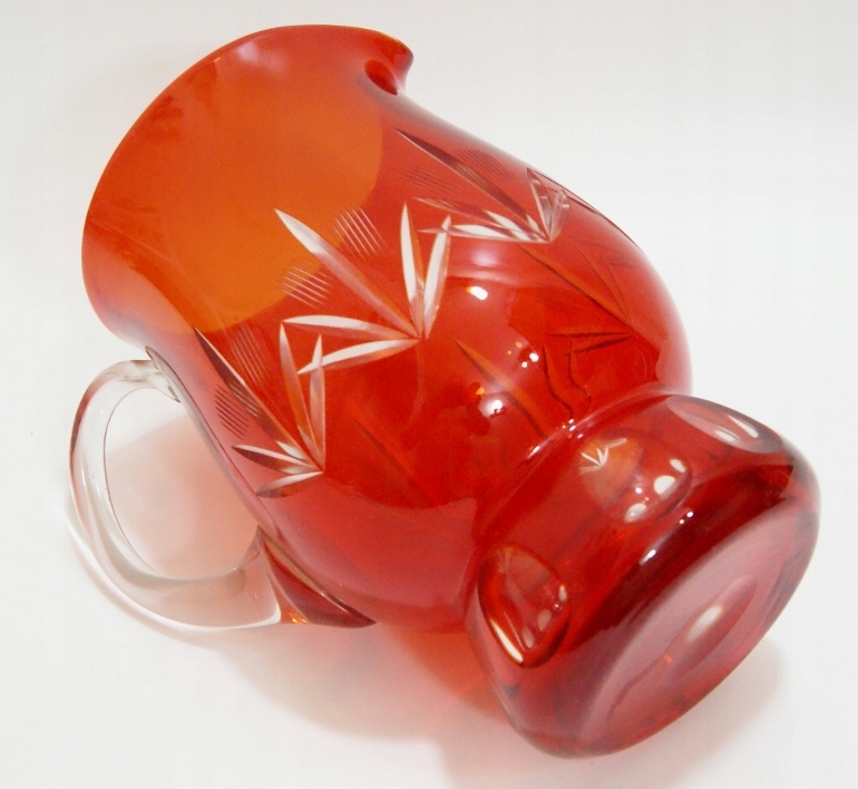 Красивый, старый кувшин из красочного, слоистого хрустального стекла, кувшин с красивыми размерами.
