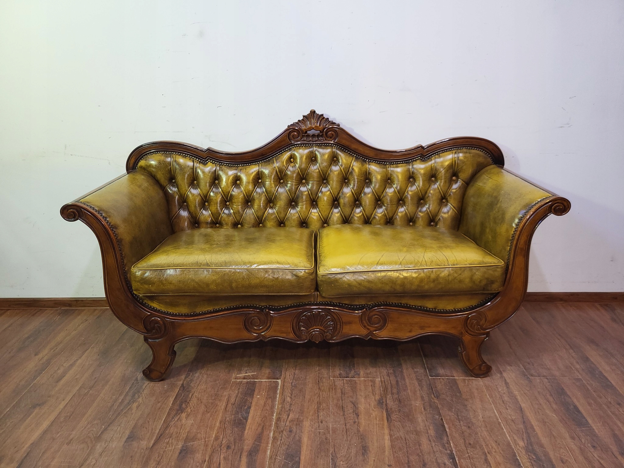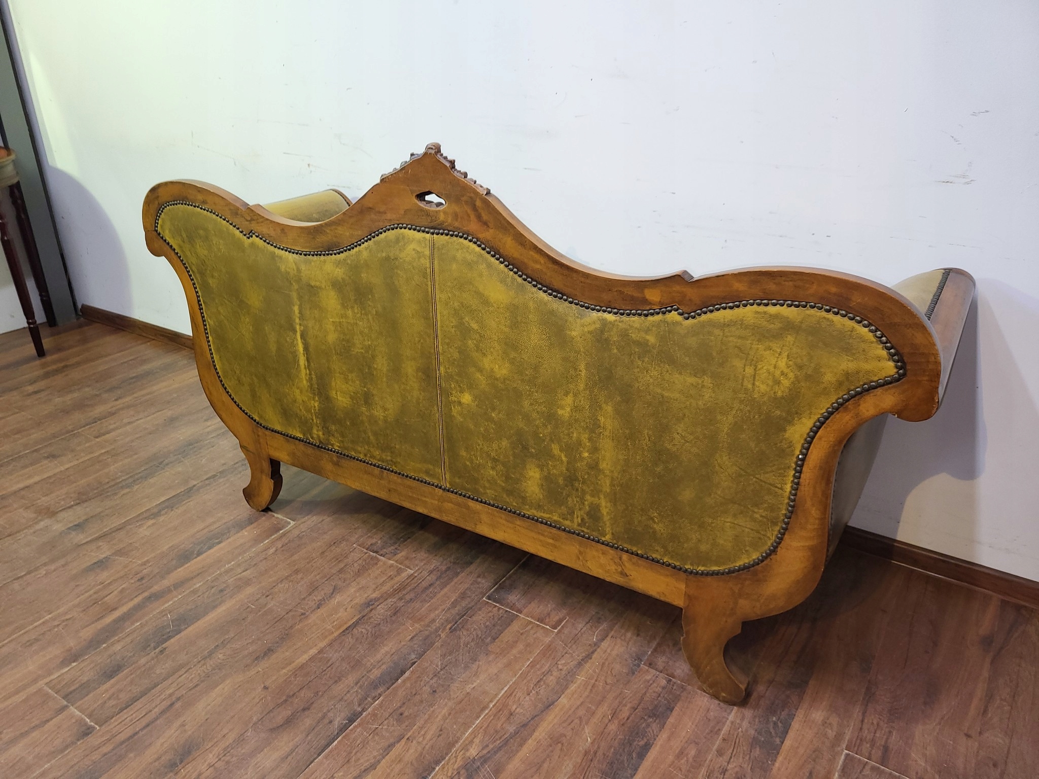 Красивый диван в стиле бидермейер. Страна производитель: Франция. Удобный диван. Материал обивки – натуральная кожа. Диван отличается невероятной элегантностью. Мебель в идеальном состоянии, готова к установке.