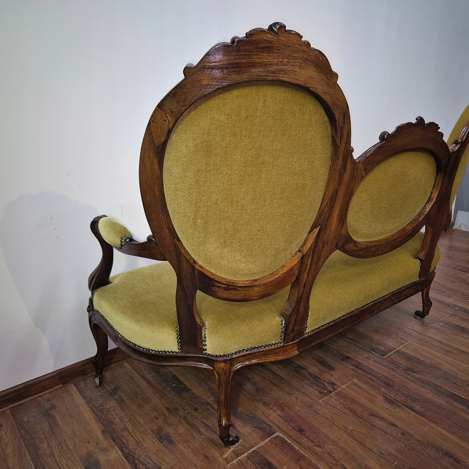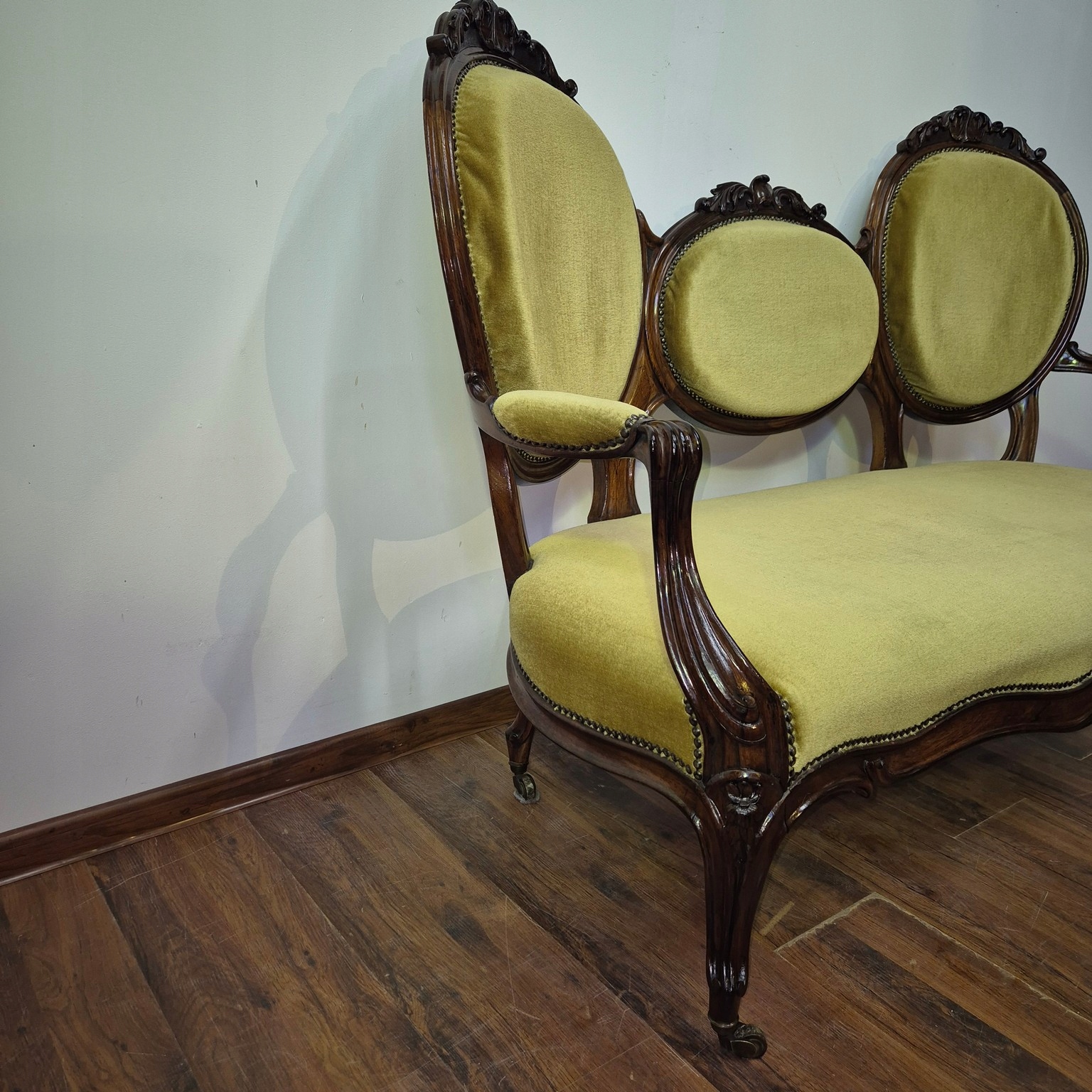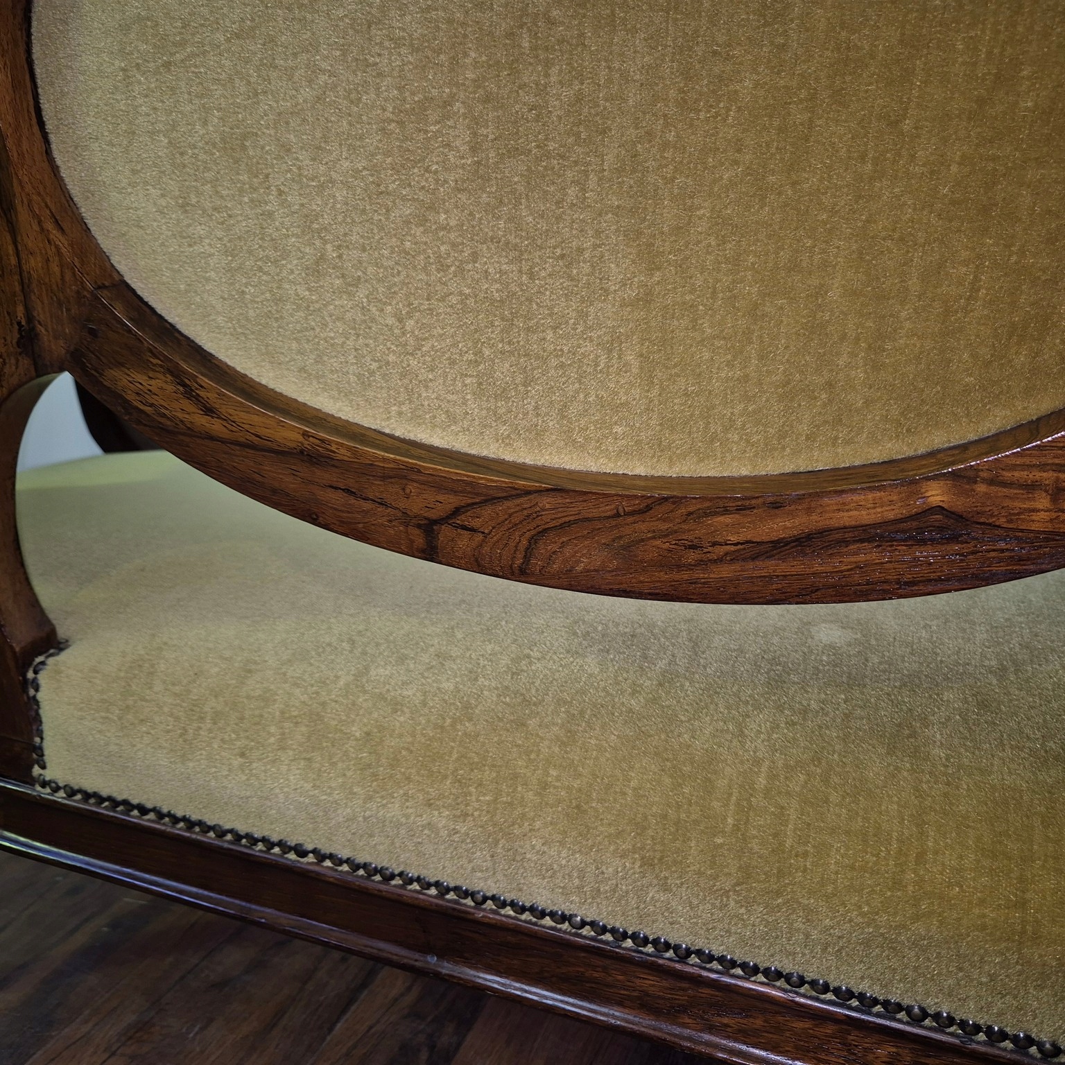 Красивый диван Бидермиер. Курн происхождения Франция, дерево Палисандер. Велеральный материал обивки, источники на пружинах. Диван характеризуется невероятной элегантностью. Состояние мебели очень хорошая, полностью стабильная мебель.