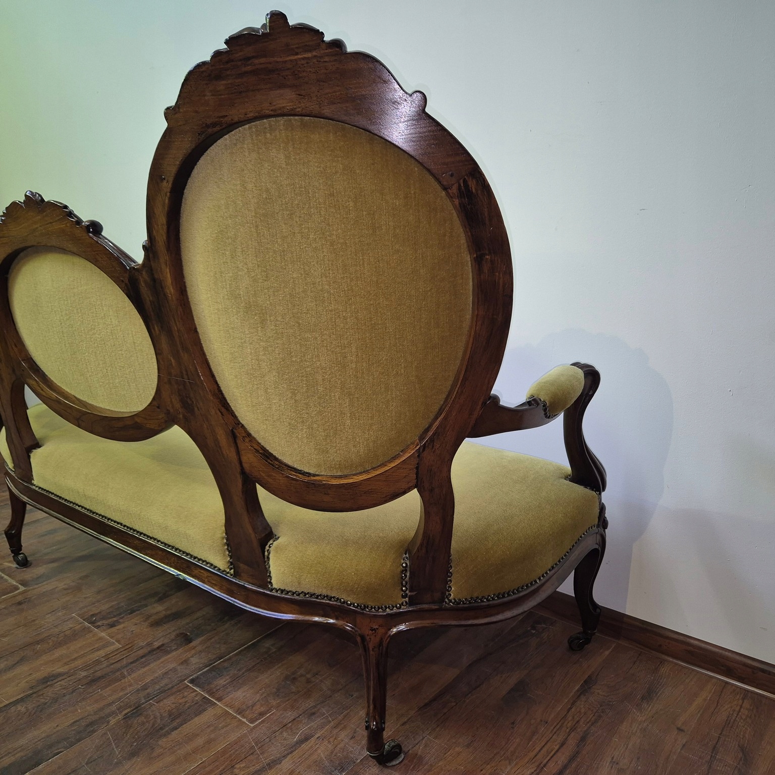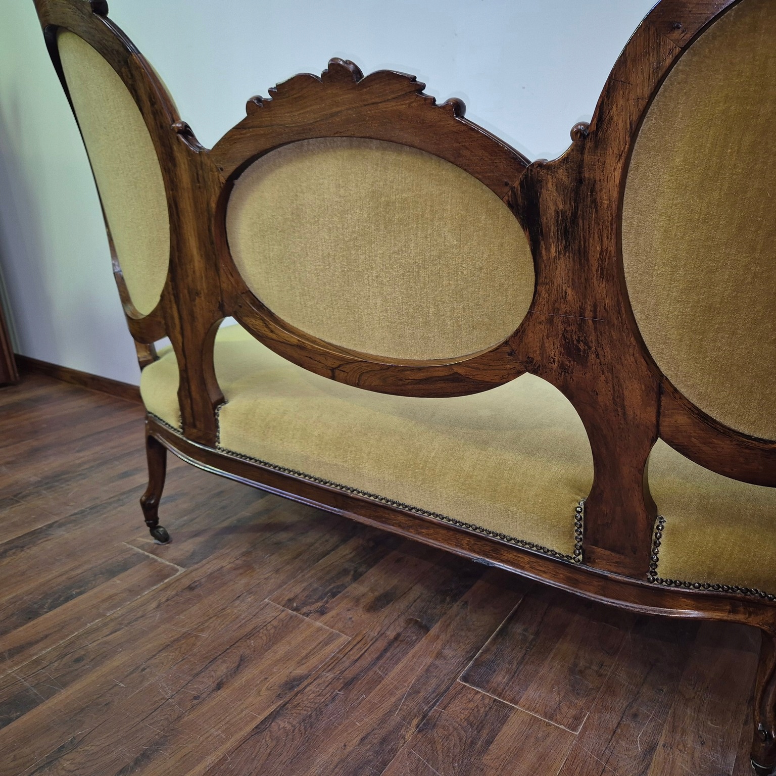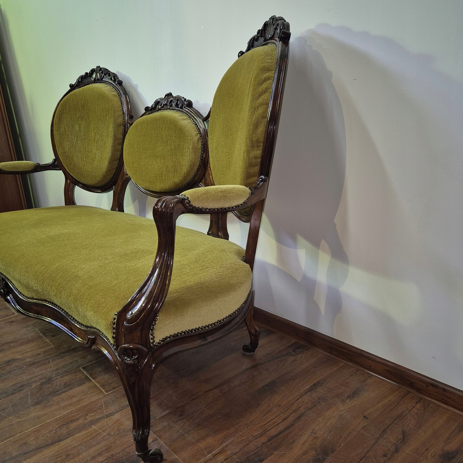 Красивый диван Бидермиер. Курн происхождения Франция, дерево Палисандер. Велеральный материал обивки, источники на пружинах. Диван характеризуется невероятной элегантностью. Состояние мебели очень хорошая, полностью стабильная мебель.