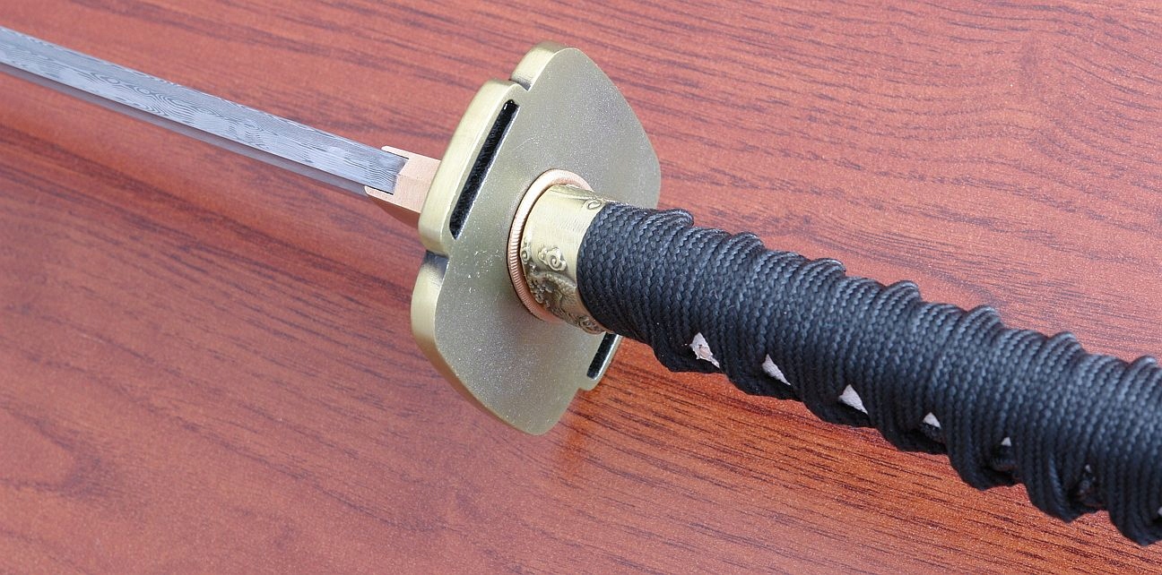 - деревянная ручка (цука), обтянутая кожей ската (саме-гава), шелковая тесьма (цука ито) (искусственный шелк).