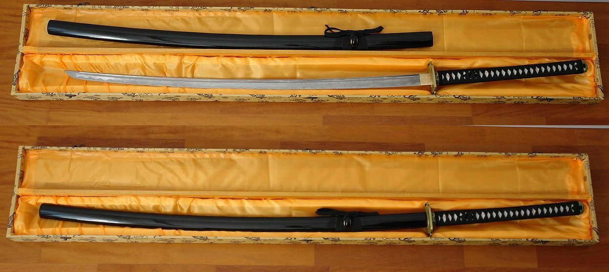 Самурайские о-дачи (длинная катана против верховой езды), ручная ковка из стали. Меч новый, неиспользованный, в атласной коробке с чехлом и набором для ухода за мечом.