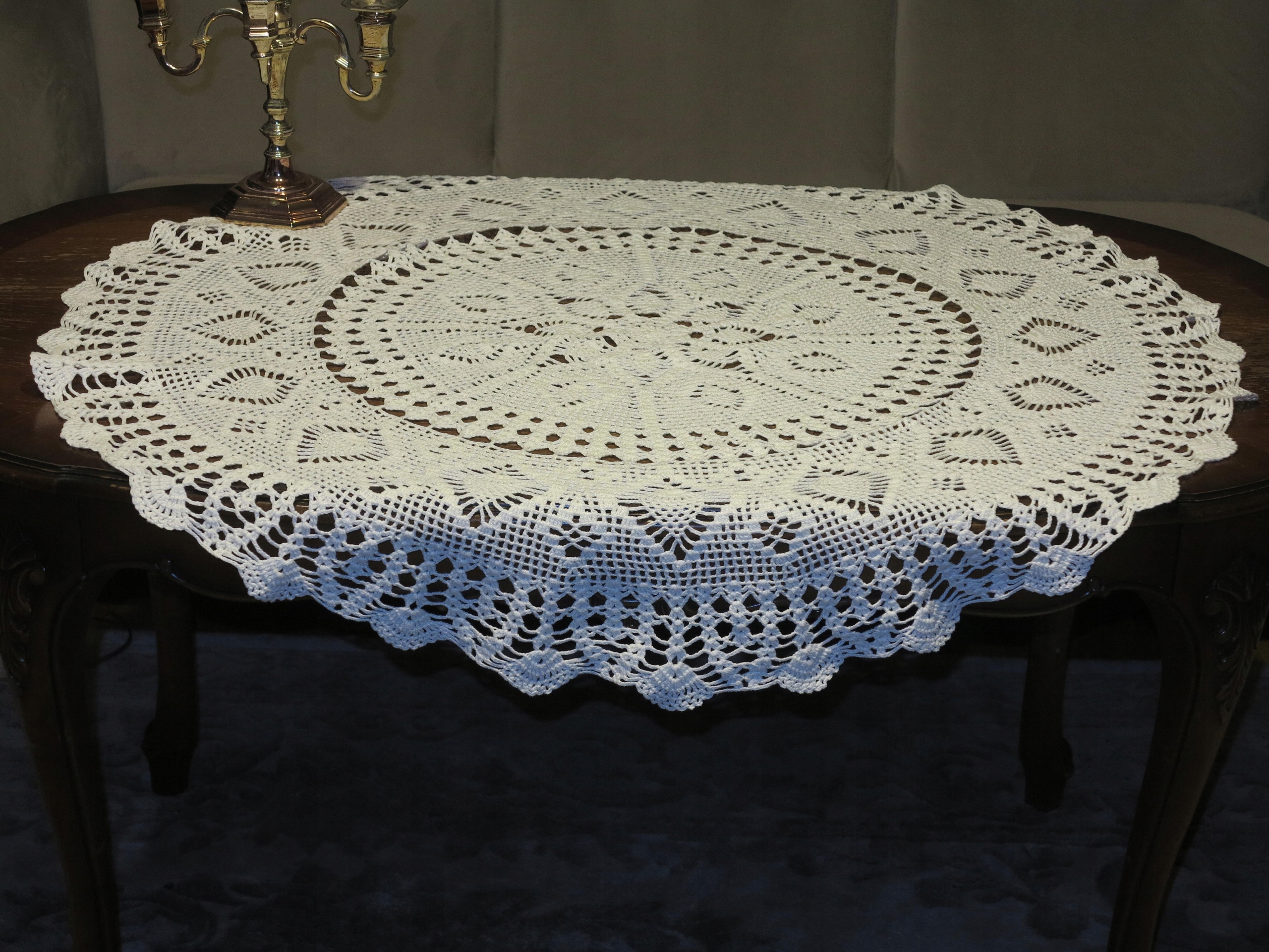 Тема аукциона - красивая скатерть, сделанная вручную в крючке в очень декоративном рисунке. Это выглядит красиво на столе. Имеет размеры: диаметр: 100 см. Используется, в супер хорошем состоянии и качество. Я рекомендую