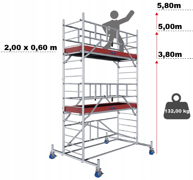 - Сертификат TÜV, грузоподъемность 200 кг/м², нагрузка до 240 кг (поверхностная нагрузка) в соответствии с новым стандартом PN EN 1004-01, группа лесов 3.
