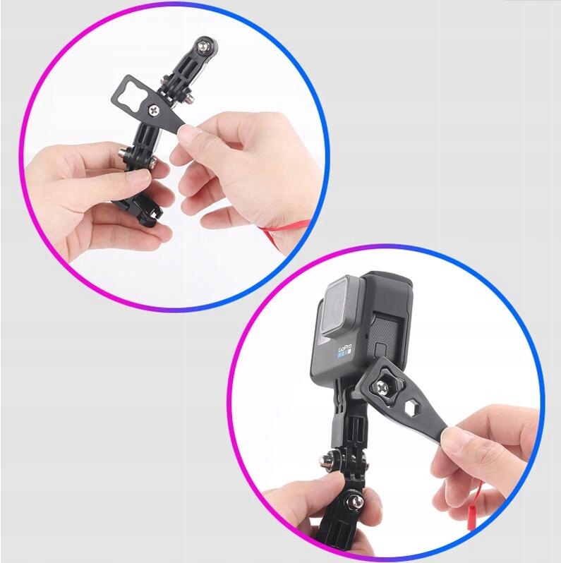 Ручка полностью регулируется в диапазоне 360 градусов, благодаря чему у нас есть ряд возможностей для установки подходящей рамы.Кроме того, в комплект входят ремни, которые помогут вам полноценно использовать возможности нашего устройства. Более того, его можно комбинировать с другими аксессуарами GoPro, которые мы предлагаем.