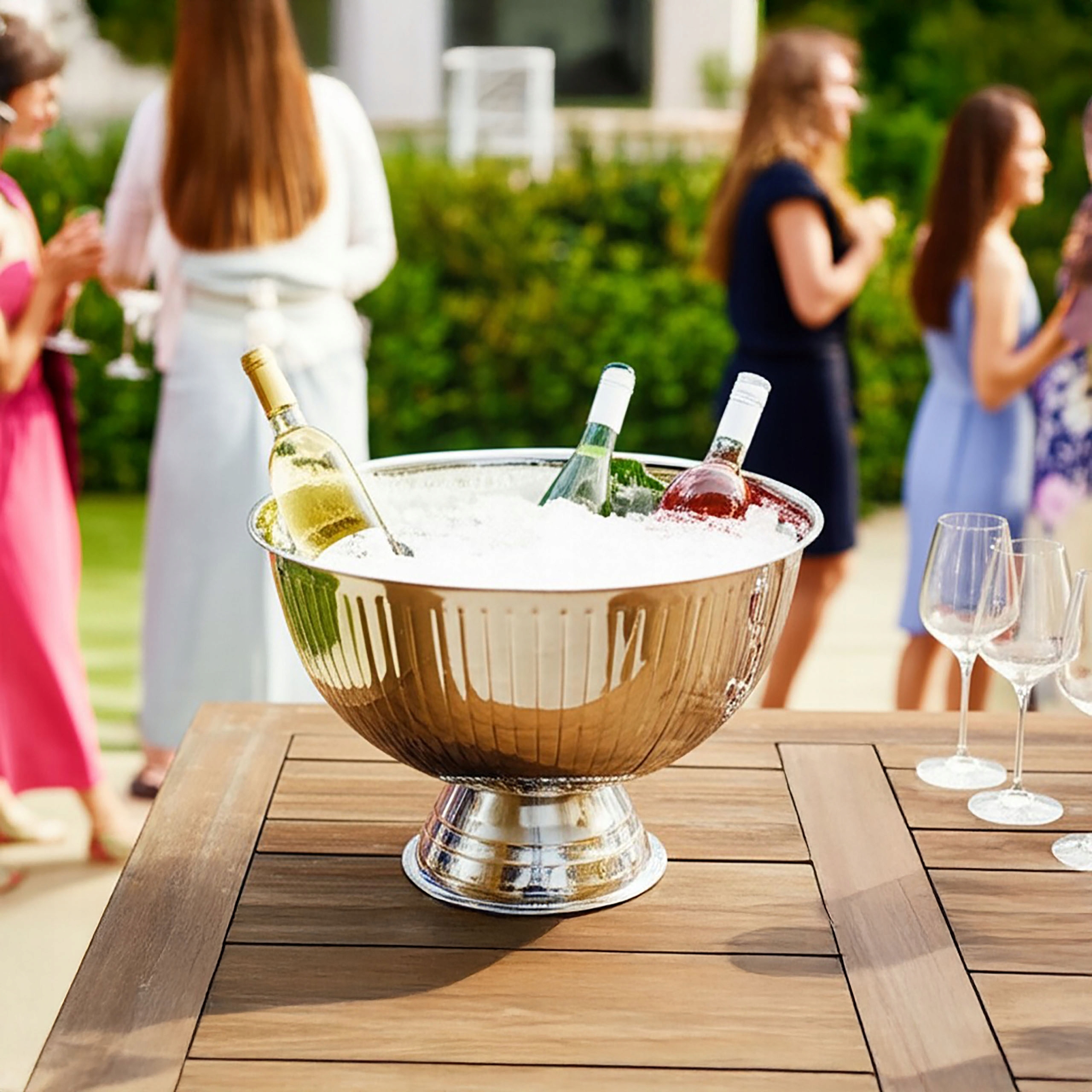 Большой размер чаши позволяет одновременно охлаждение до 6-8 бутылок - идеально подходит для использования на свадьбах, вечеринках компании и домашних мероприятиях. Это отлично смотрится на столе, добавляя элегантность в любую договоренность.