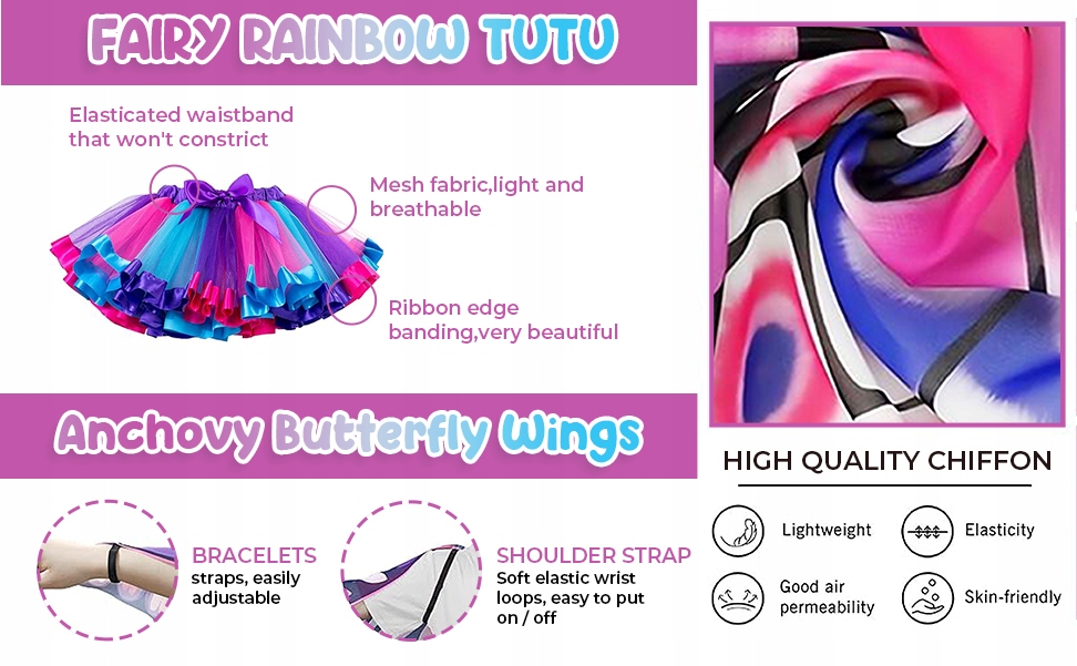 Крылья бабочки для девочек, ширина 148 см х 48 см в высоту, у них есть гибкие ремни на плечах и петлях пальцев, которые обеспечивают безопасное соответствие для легких для корректировки крыльев, благодаря которой эти костюмы дождей являются отличным выбором для всего, от костюмов Хэдбоуина. веселье.