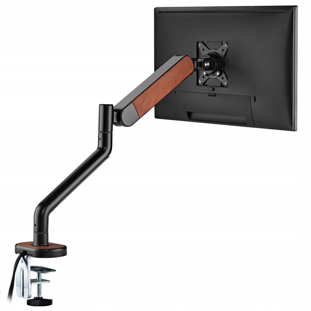 Элегантный черный держатель монитора с инновационным пружинным механизмом, обеспечивающим плавную регулировку. Совместим с мониторами 17–35 дюймов и стандартными креплениями VESA. Оснащен портами USB-A, USB-C и системой управления кабелями. Прочная конструкция, обеспечивающая стабильную установку.