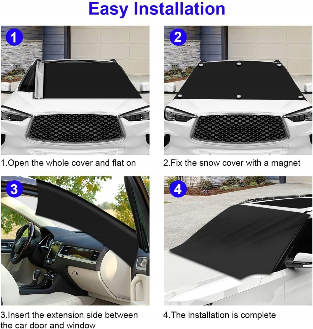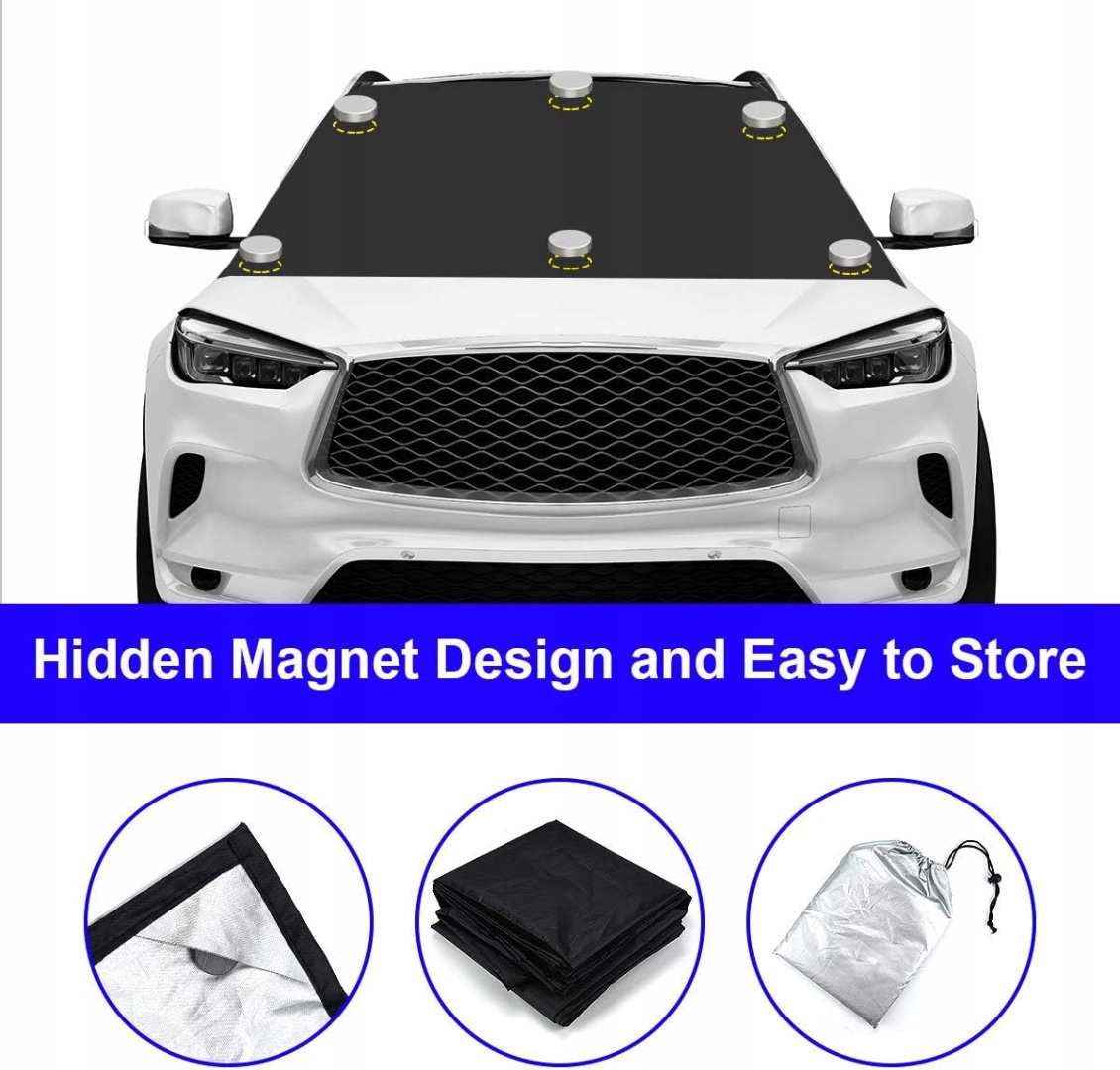встроенный -в магните: Магнит встроен в крышку, чтобы не поцарапать вагольный лак. Вам не нужно беспокоиться о потере магнитов и безопасно положить их на капюшон машины. Двойные маленькие магнитные края плотно прикрепляют крышку от сверху к маске. Они гарантируют, что передняя крышка лобового стекла всегда остается на месте, даже во время сильного ветра
