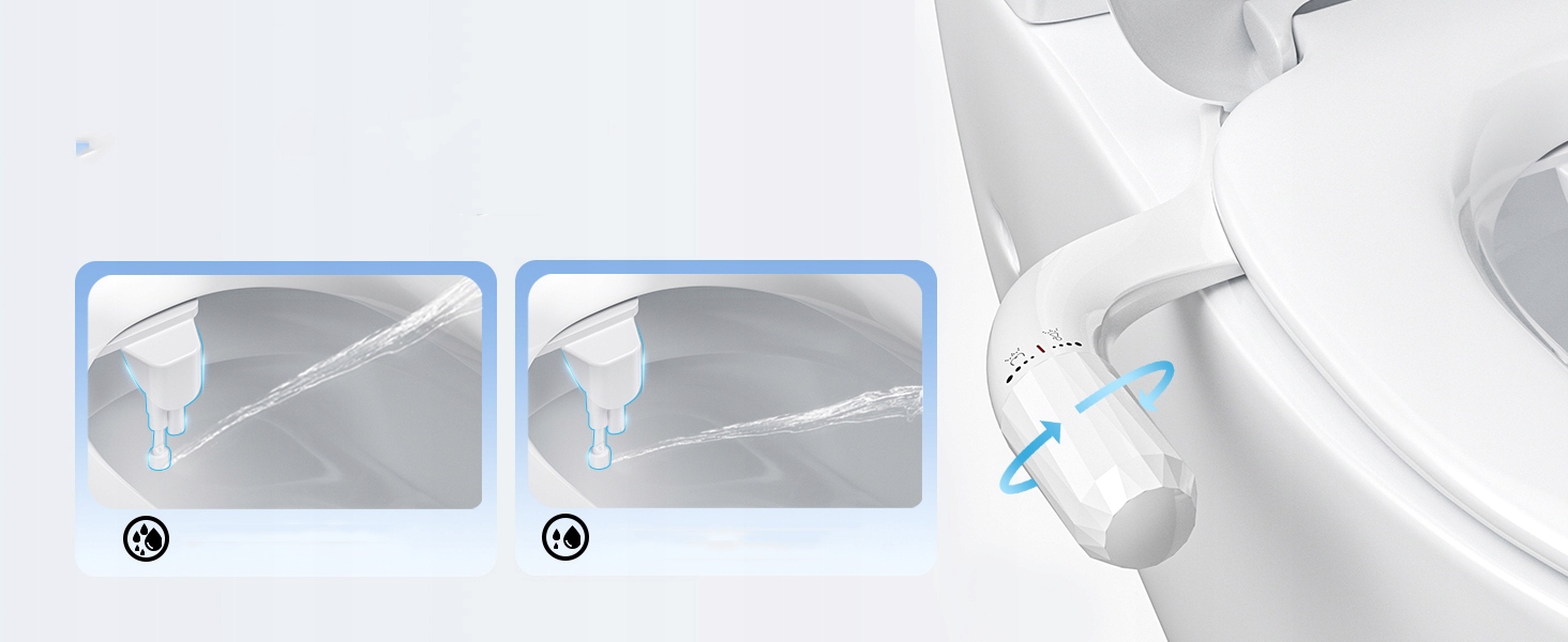 🚿 Создано давление воды : режим управления давлением воды и очистка нашего покрова в туалете может регулироваться отдельно. Структура ручки, легче контролировать. Регулируемый деликатный до сильного спрей с простым вращением кнопки; Старшие и дети также могут легко использовать бидеты, чтобы получить идеальную интенсивность