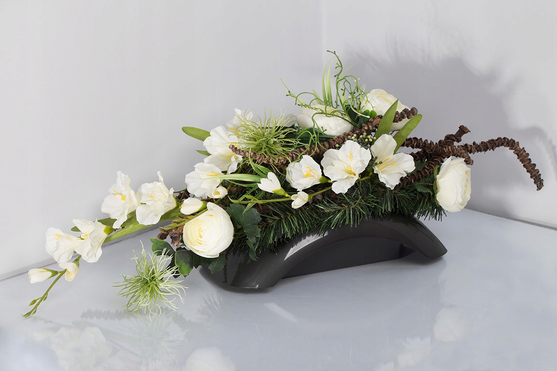 Выполненный из пластика, он идеально подходит для декора и композиций как из живых, так и из искусственных цветов. Основа для праздничных, повседневных и кладбищенских композиций.