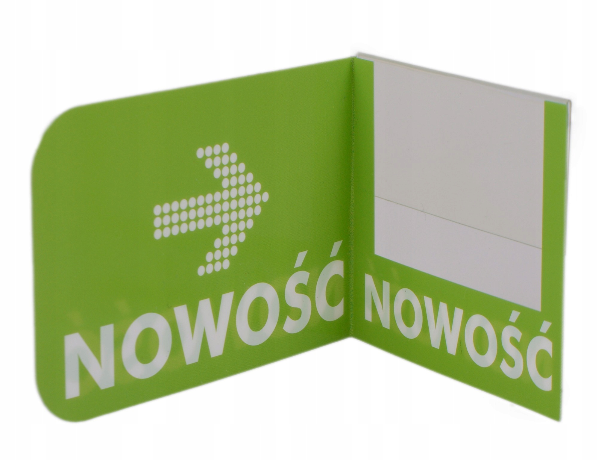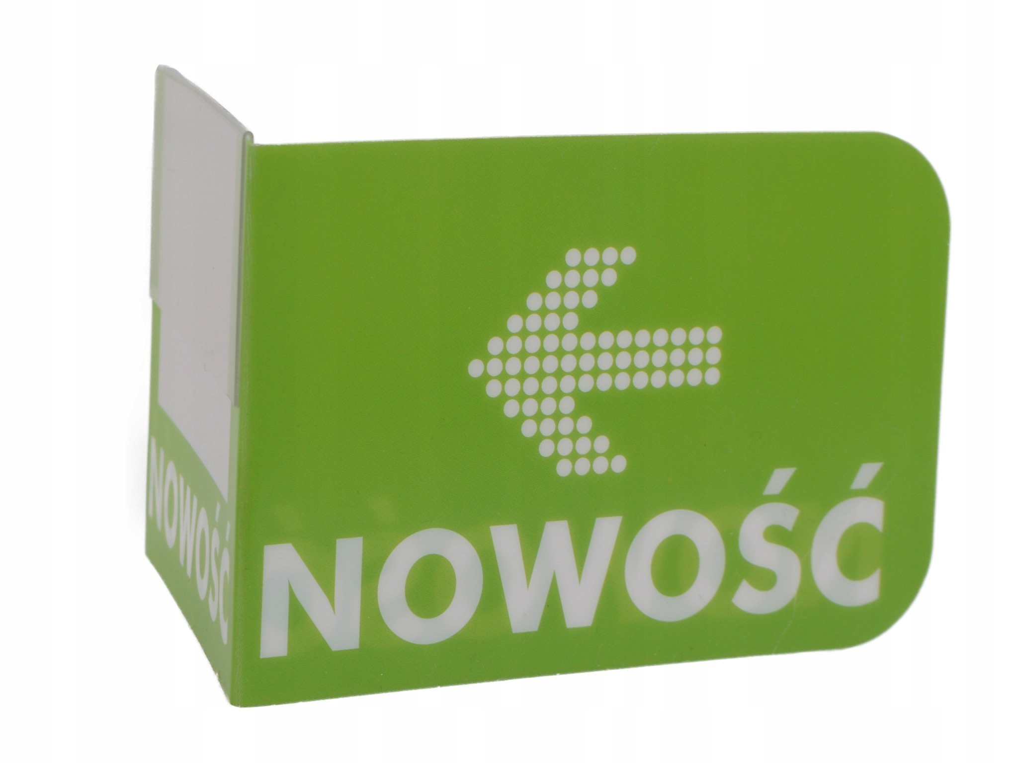 Изготовлен из ПВХ, состоит из двух частей. Первая часть вставляется в ценник, имеется прозрачное окошко размером 5,7 х 4 см для размещения цены товара, общий размер 7 х 6 см.
