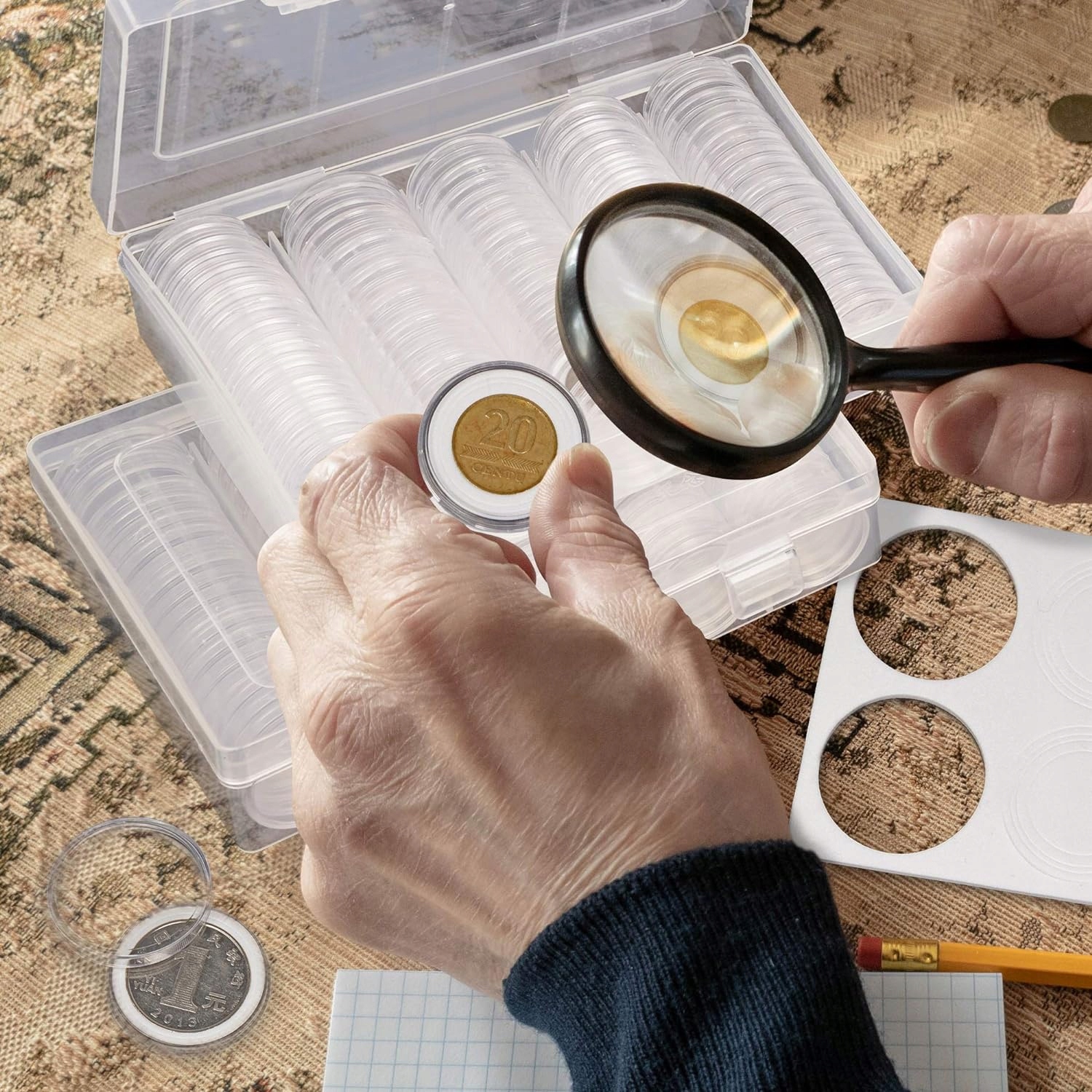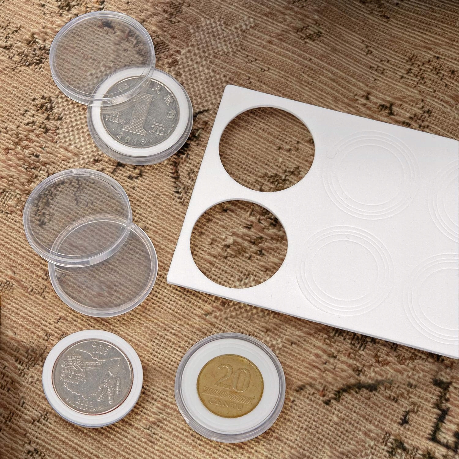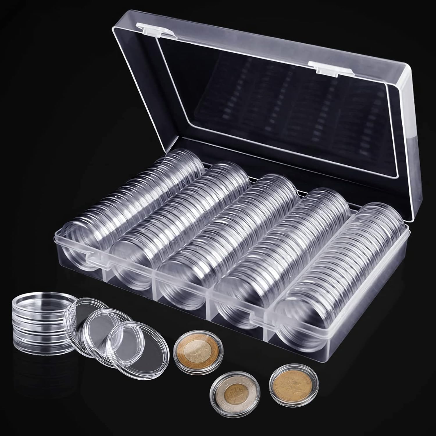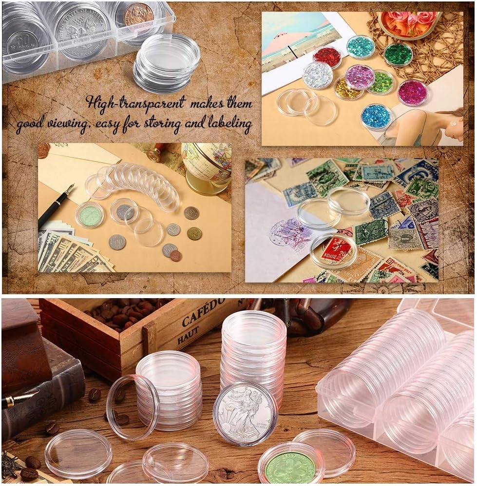💹 Отличный материал: Капсулы для монет изготовлены из пластика с высоким содержанием прозрачности и загустителя, более прочные и более устойчивые к трению, мягкие на ощупь, вмещают 100 штук размером не более 30 мм. монеты или памятные монеты.